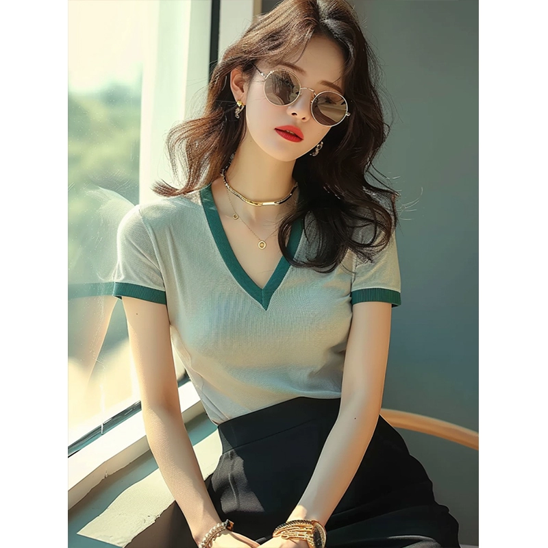 | nameOriginal | Light green v-neck slim fit small top short-sleeved t-shirt |
