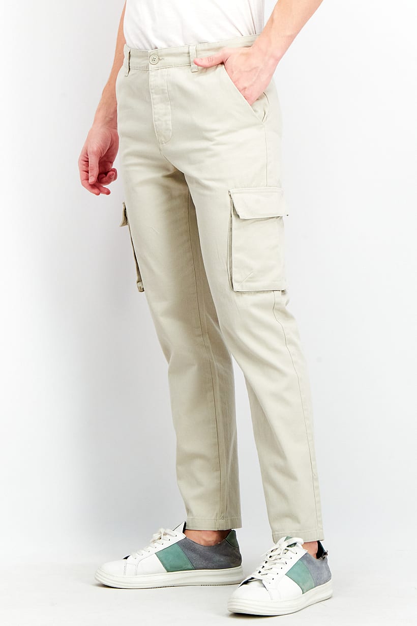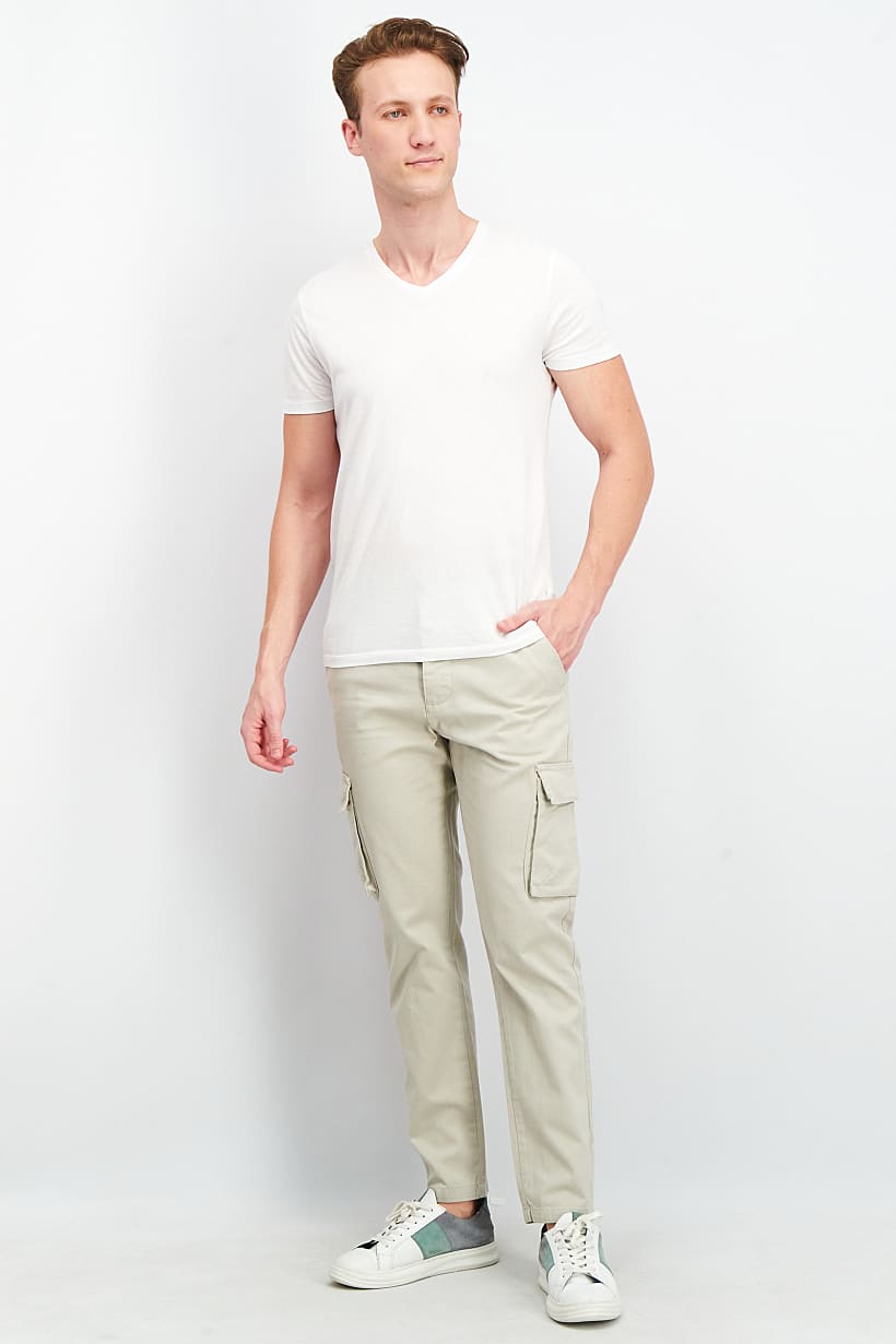Men Clothing, Pants, men regular fit solid cargo pants light grey