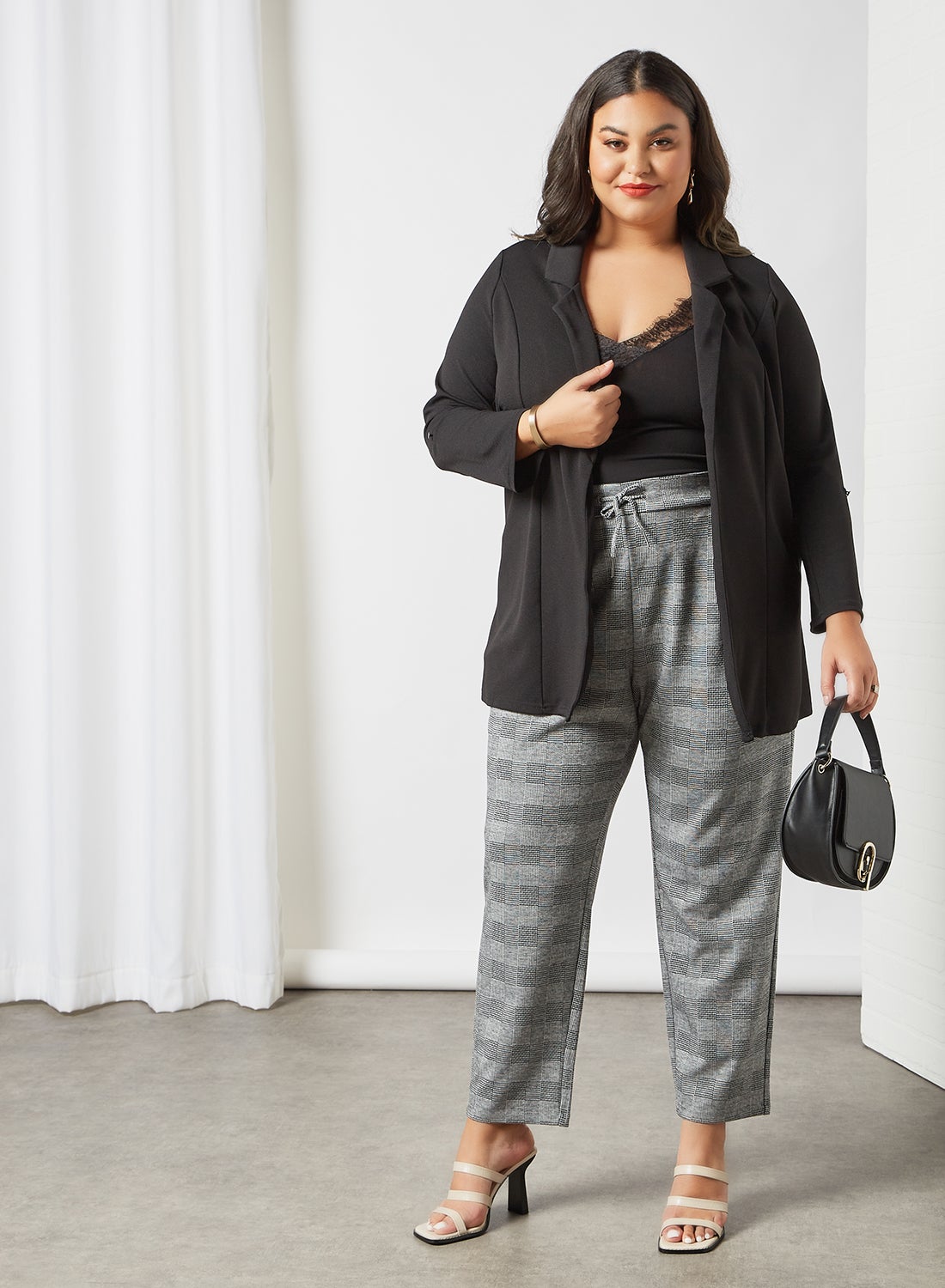 | nameOriginal | Plus Size Checkered Trousers Light Grey |