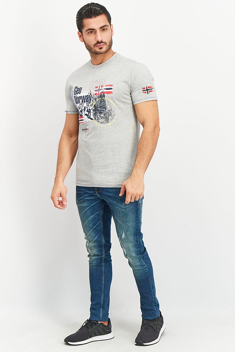 Light Grey Combo Graphic Print Men’s Crew Neck T-Shirt.