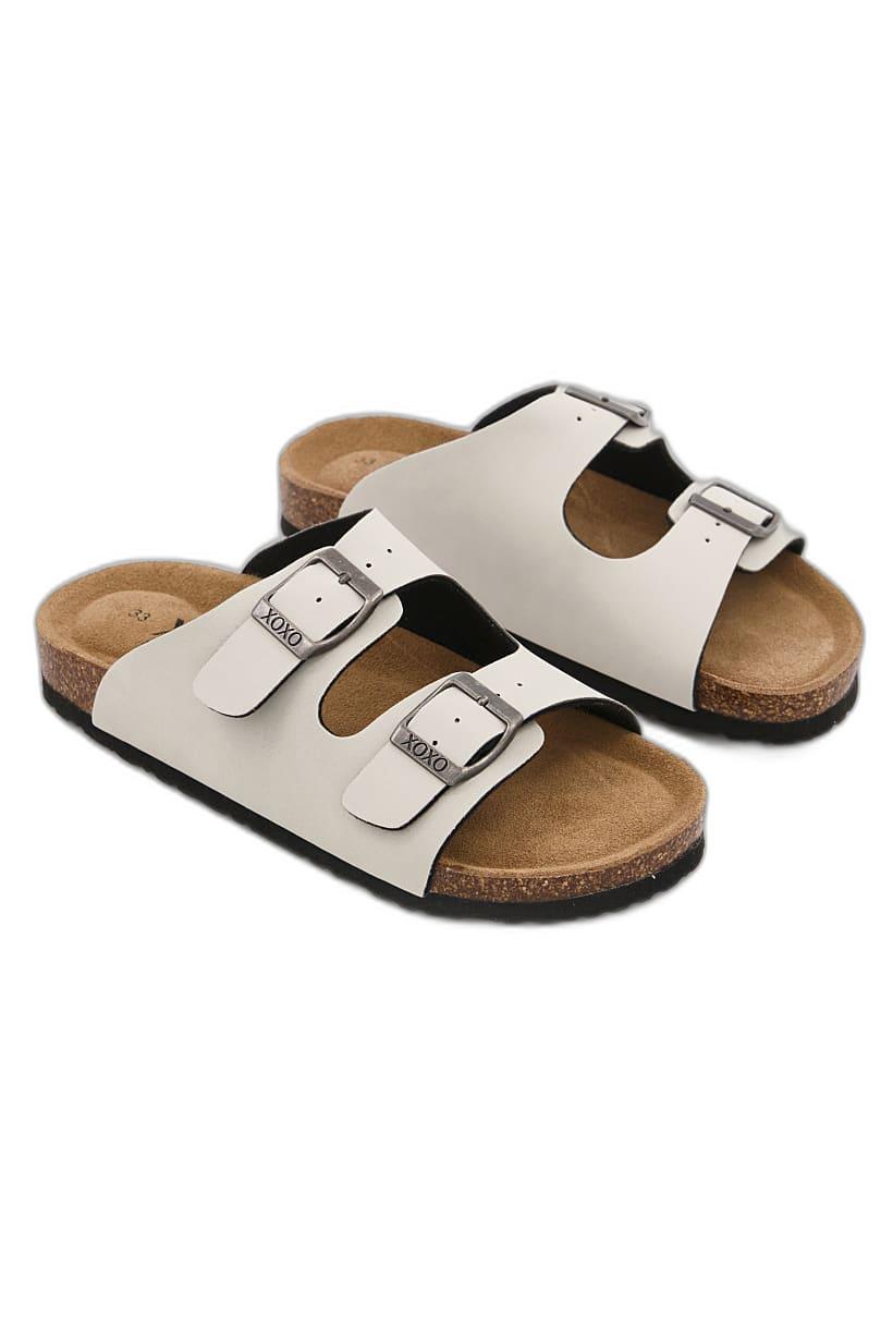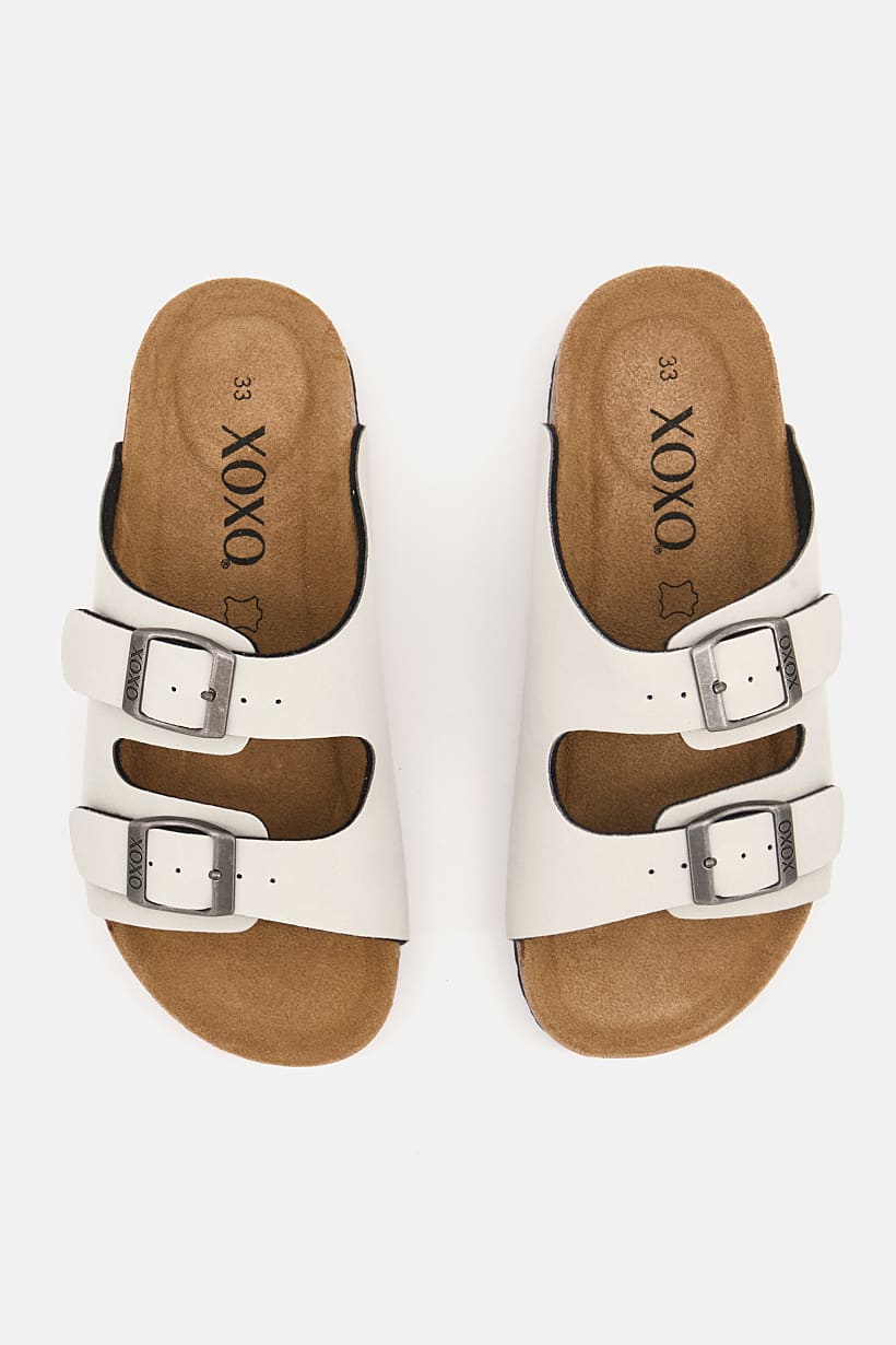 Girls Fashion, Girls Footwear, kids girl cork slip on slides light grey