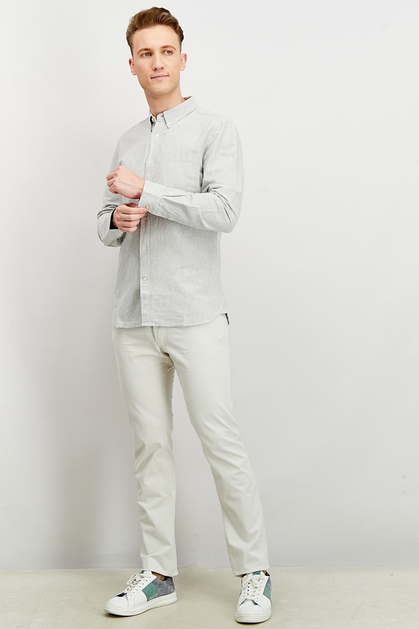 | nameOriginal | Men Regular Fit Heather Long Sleeve Casual Shirt, Light Grey |