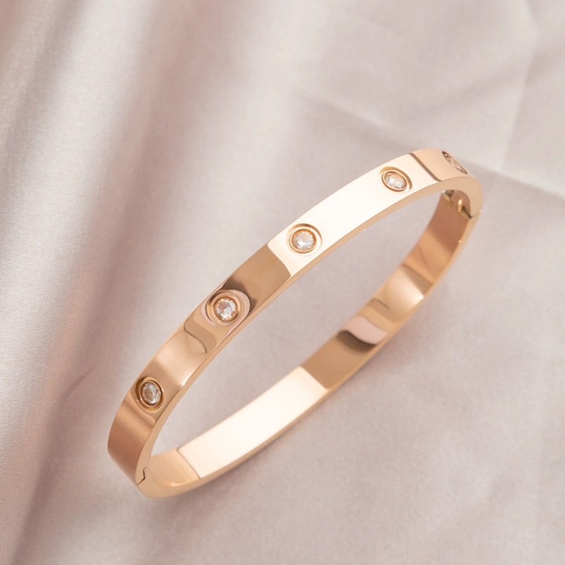 Light luxury and high-end titanium steel non-fading all-diamond bracelet for women ins fashion niche design high-end 18K gold-plated bracelet
