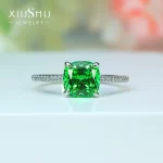 | nameOriginal | Light luxury apple green high carbon diamond niche design silver ring |