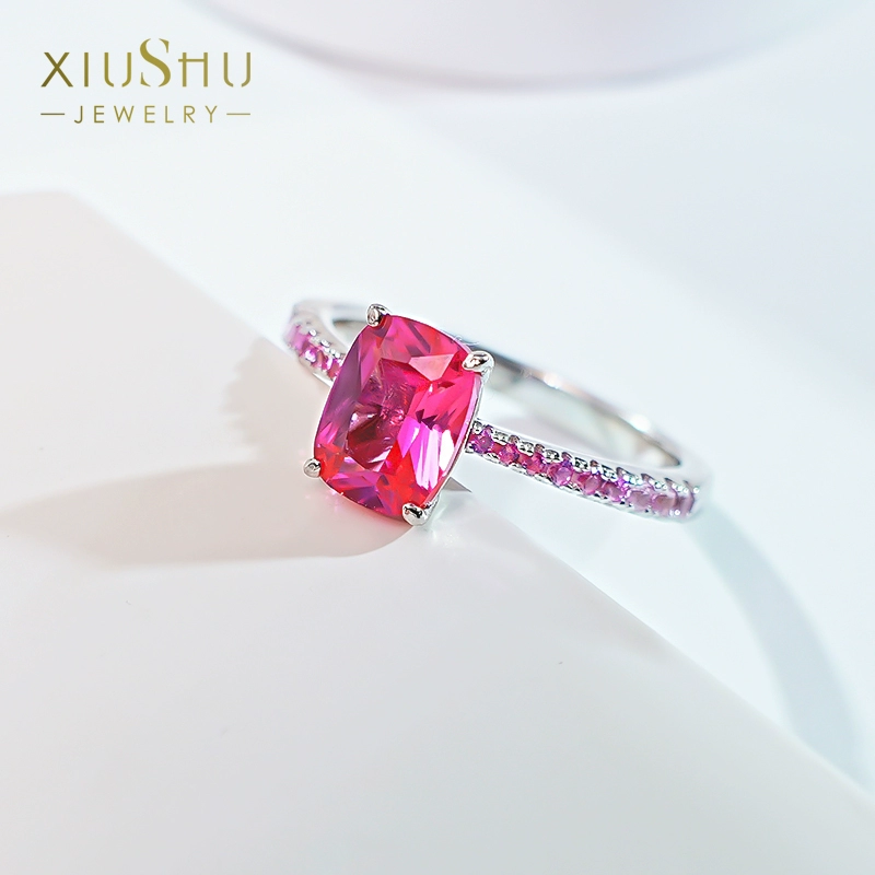 Light luxury artificial pink tourmaline 925 silver niche ring inlaid with high carbon diamond gradient temperament, versatile, fashionable and simple for women