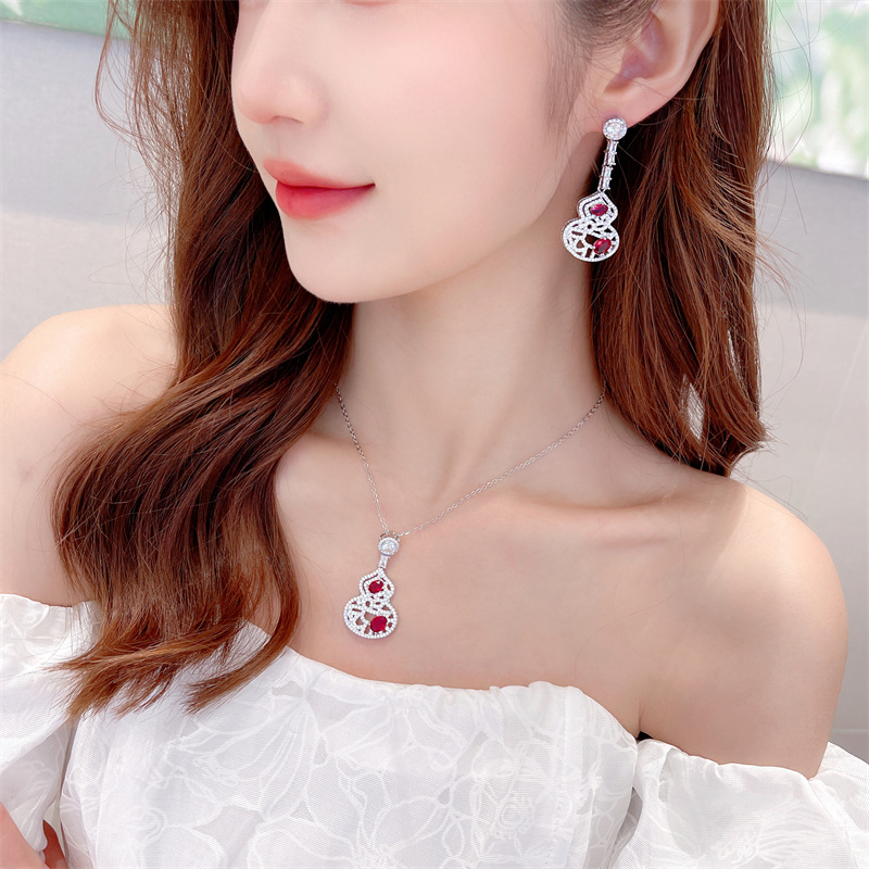 | nameOriginal | Light Luxury Banquet Dress Skirt Matching Necklace Earrings Zircon Inlay Hollow Pattern Fulu Gourd Jewelry Set |