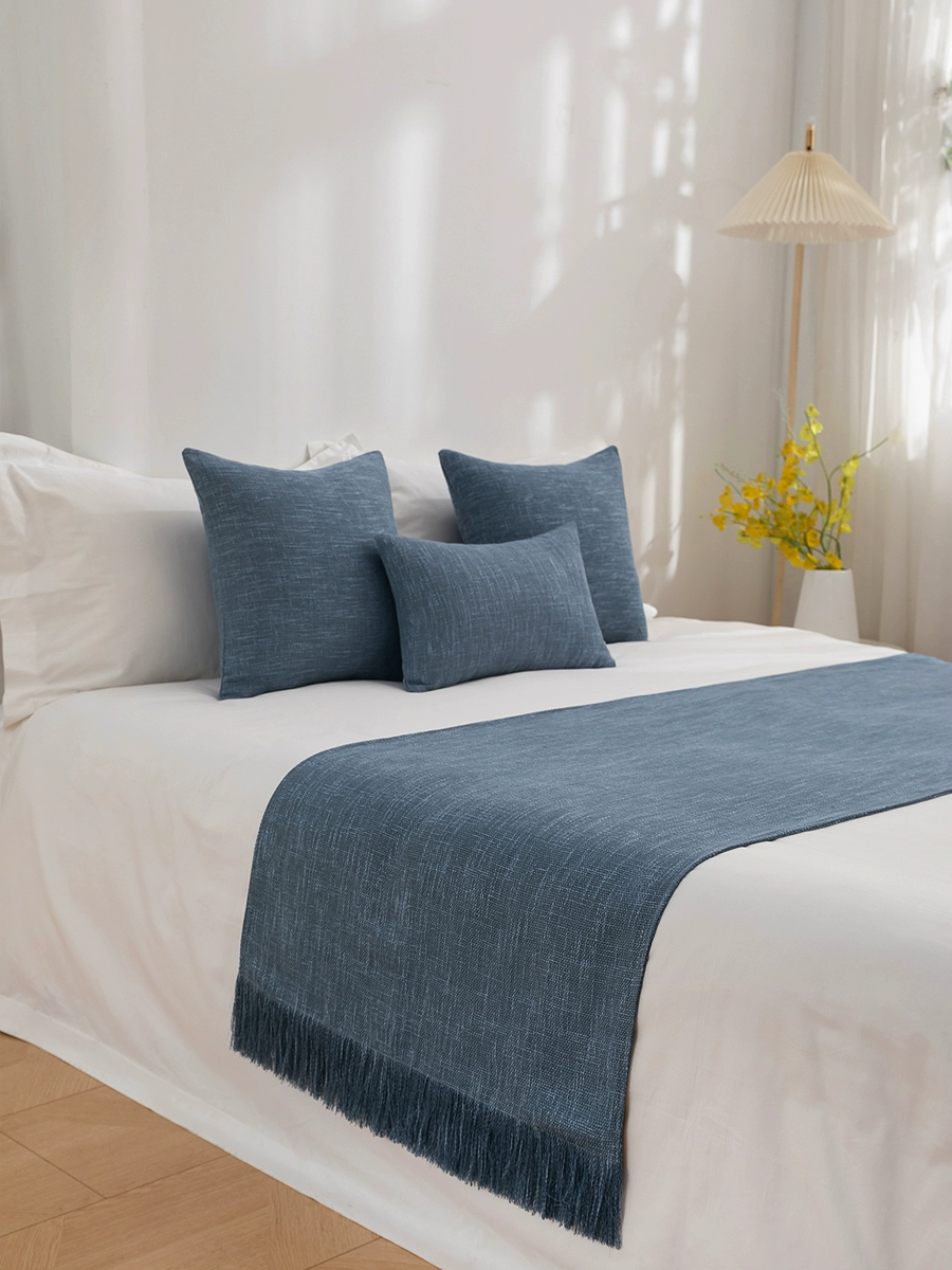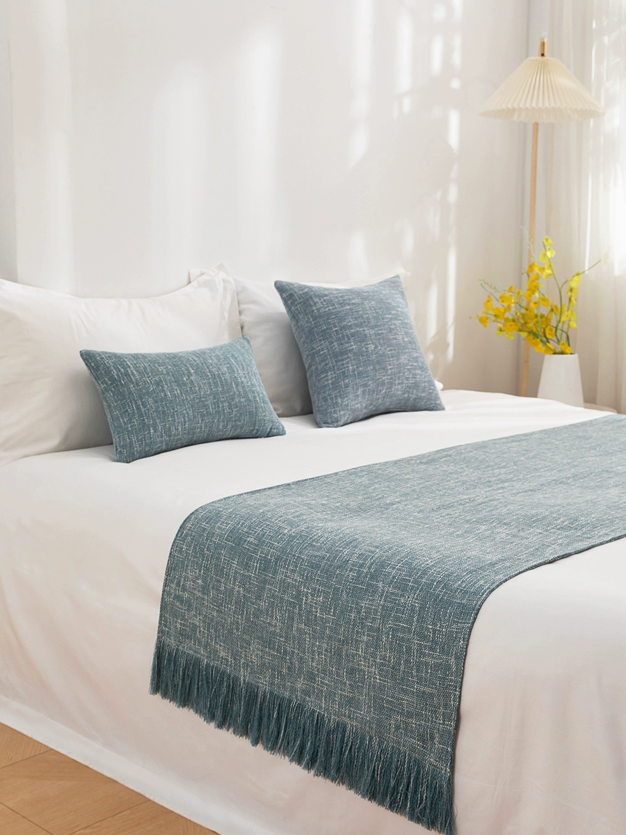 Light luxury homestay bed flag bed flagline Tailing model room Hotel bed decorative cloth strip thick hemp solid color tassel cover