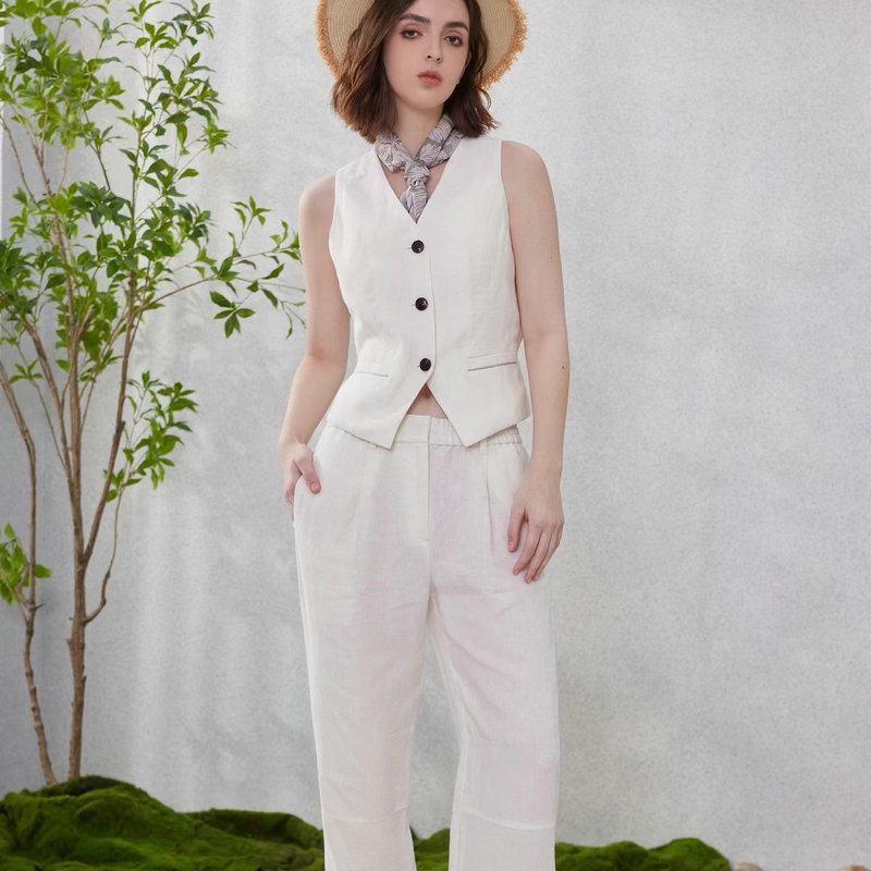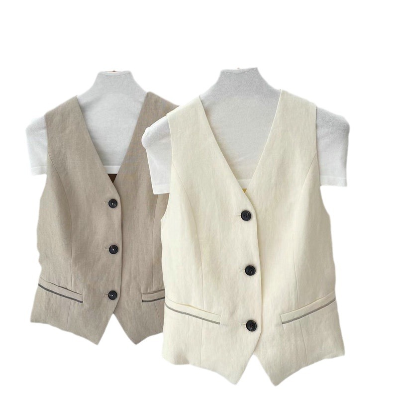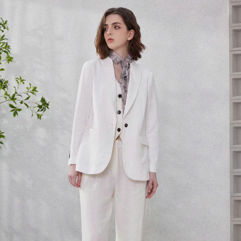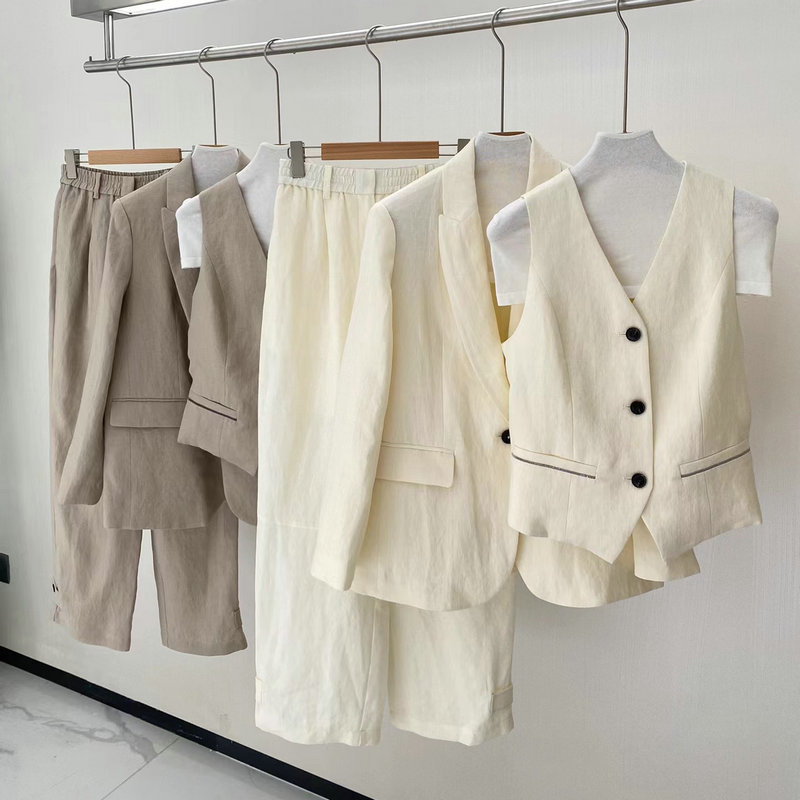 | nameOriginal | Light Luxury BC Style French Linen Solid Color Suit Set Single Button Suit Vest Vest Trousers Three-Piece Set for Women |