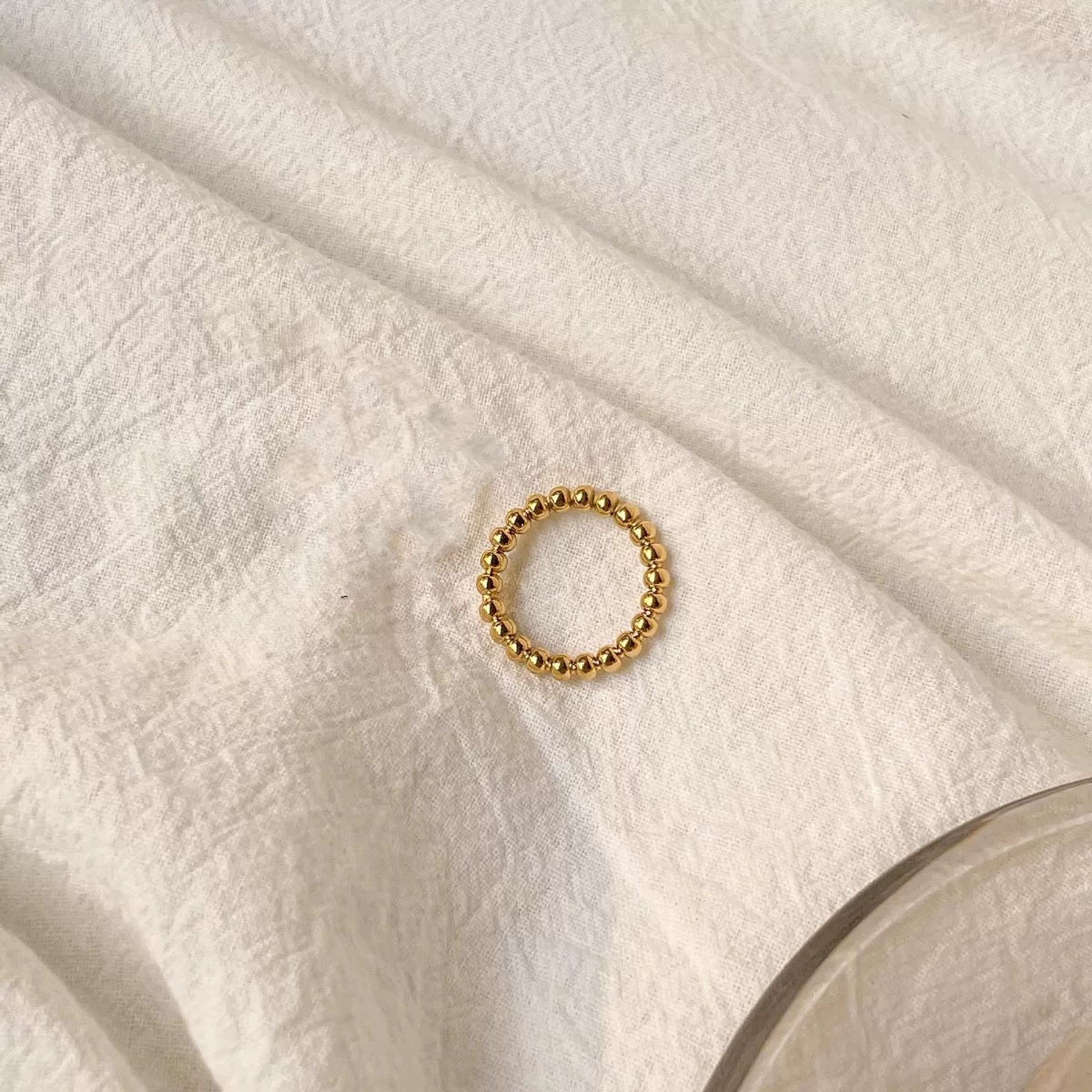 Light luxury bead solid ring women's ring stacked with gold