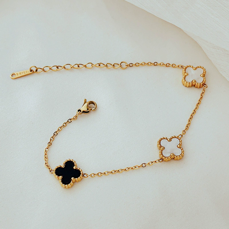 | nameOriginal | Light luxury black and white women's titanium steel temperament four-leaf clover bracelet |