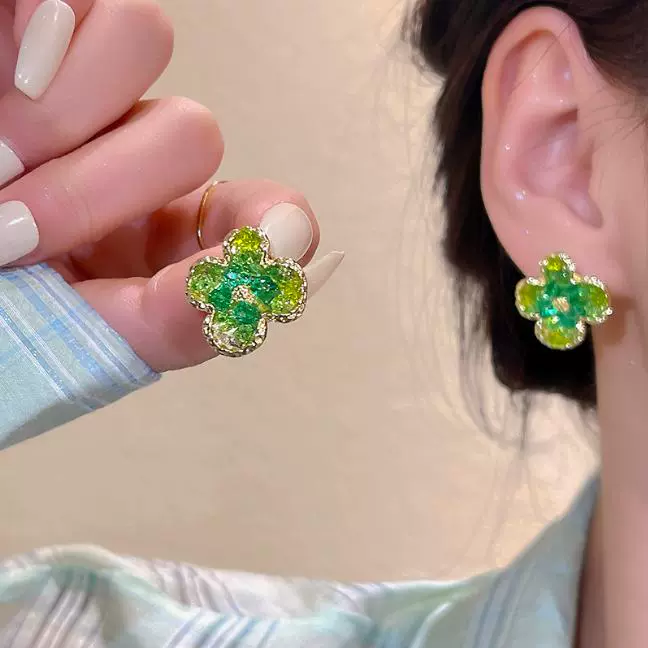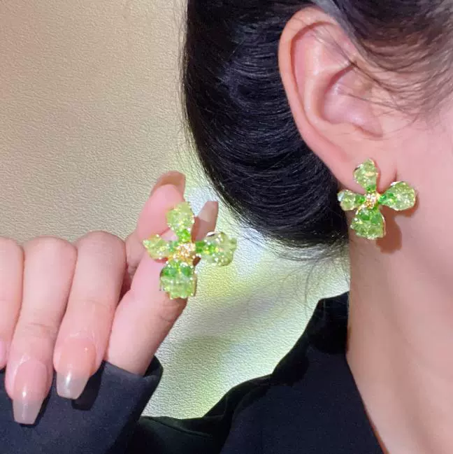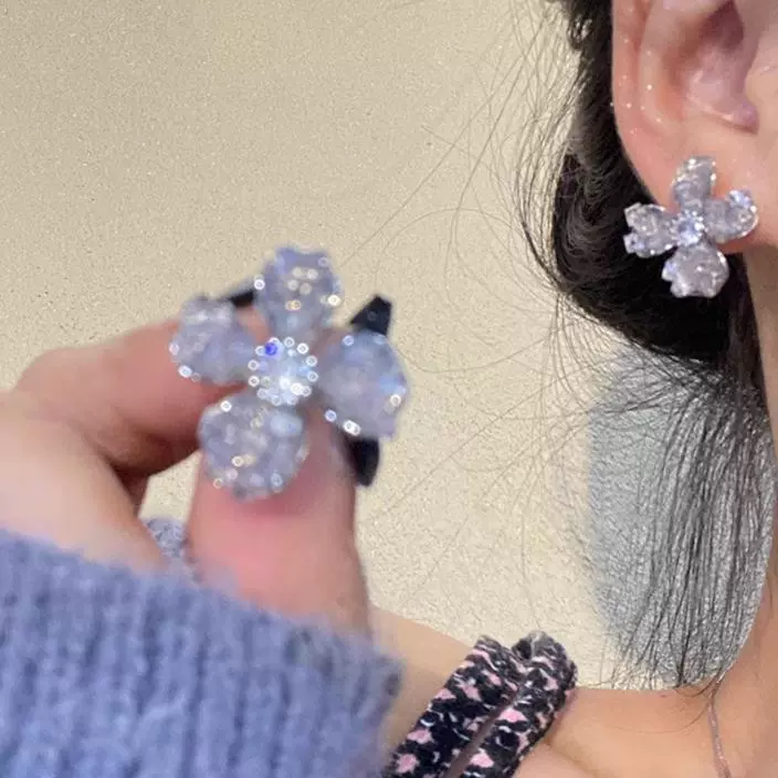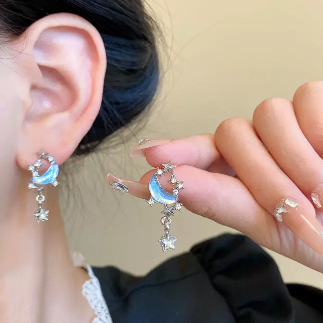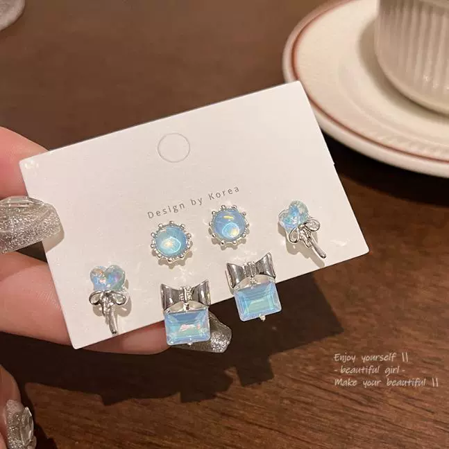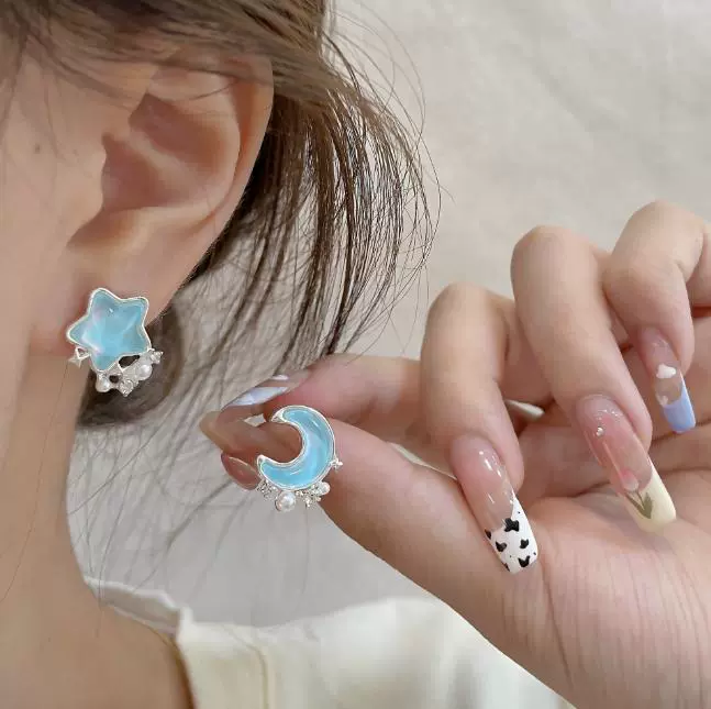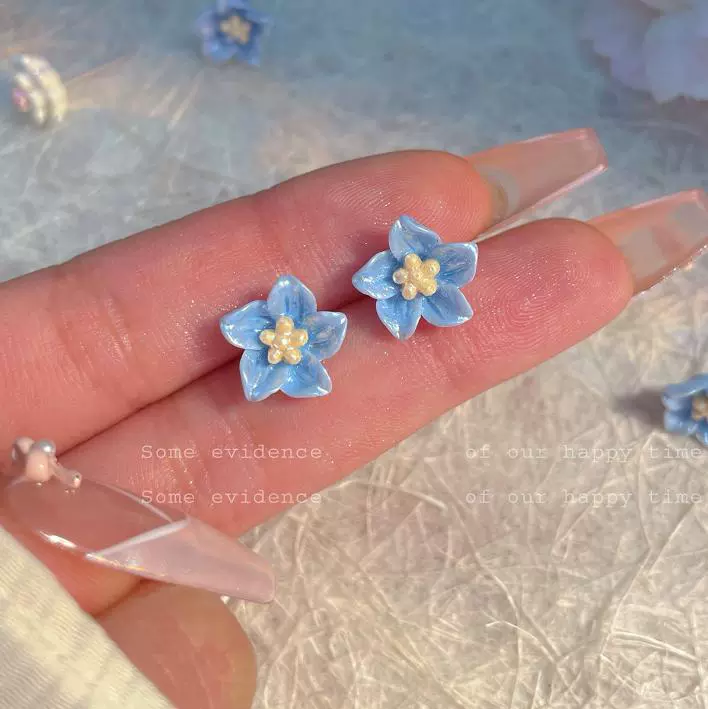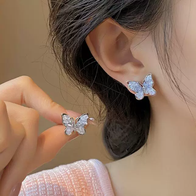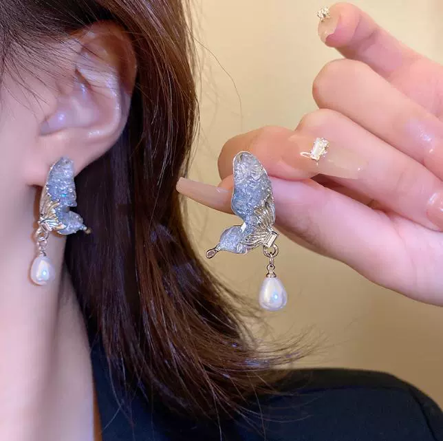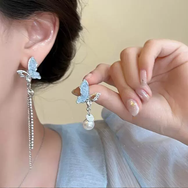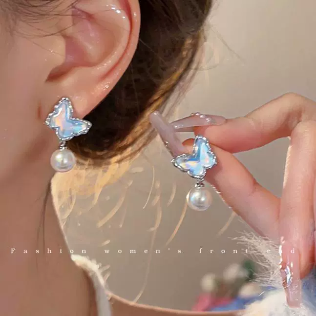 Light luxury blue Butterfly Girl popular niche pearl earrings