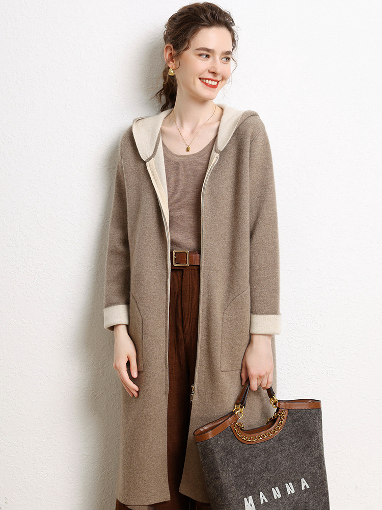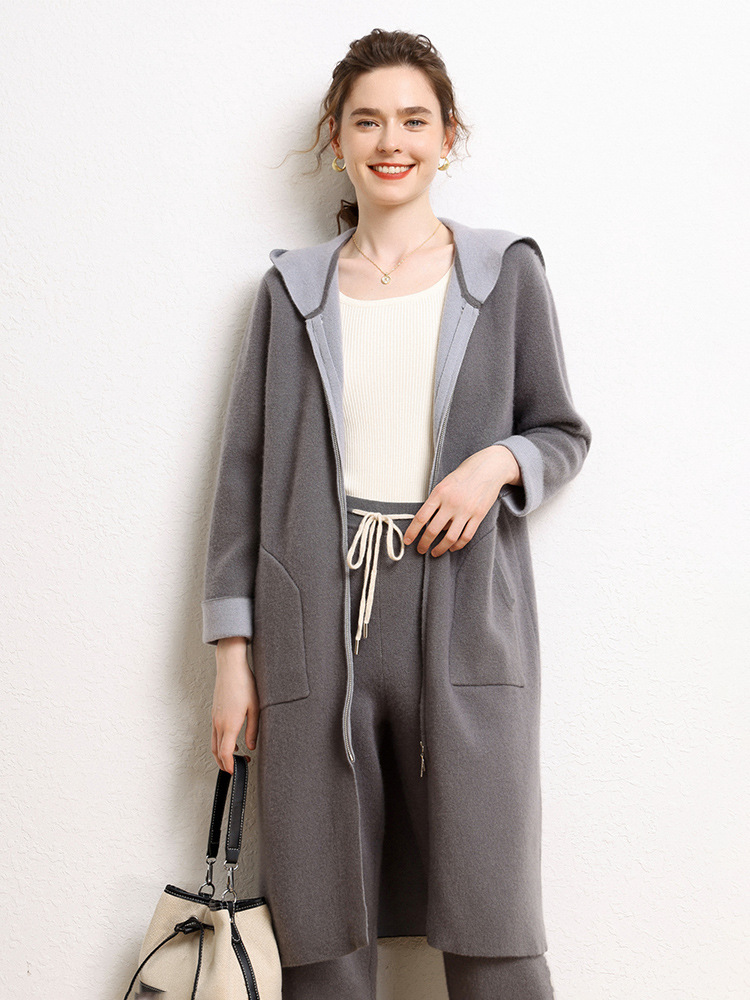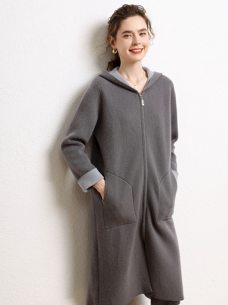 | nameOriginal | Light luxury cashmere solid color knitted coat women's all-matching loose soft skin-friendly hooded coat all-matching |
