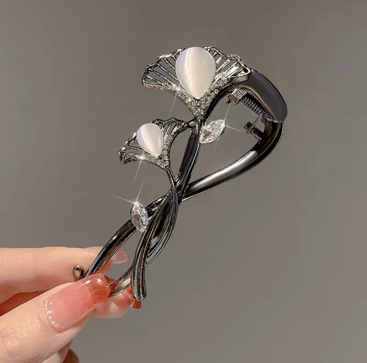 | nameOriginal | Light luxury cat's eye hairpin frog buckle ginkgo leaf |