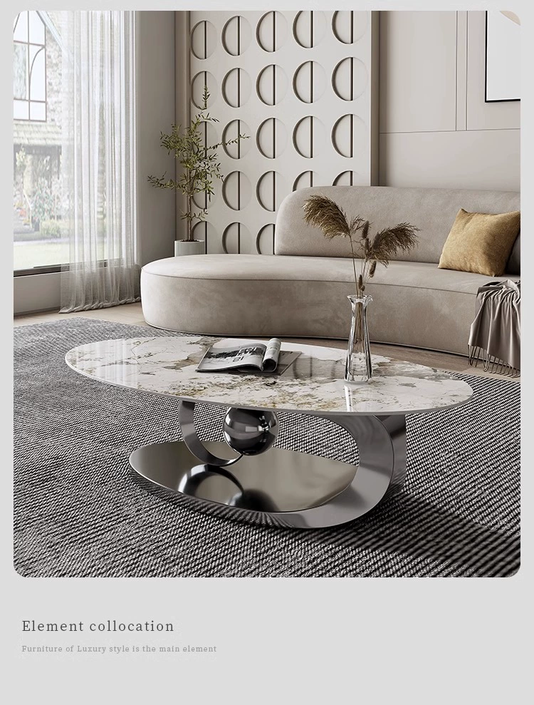 | nameOriginal | Light luxury coffee table, simple modern home living room hotel stainless steel slate oval design small apartment tea table |