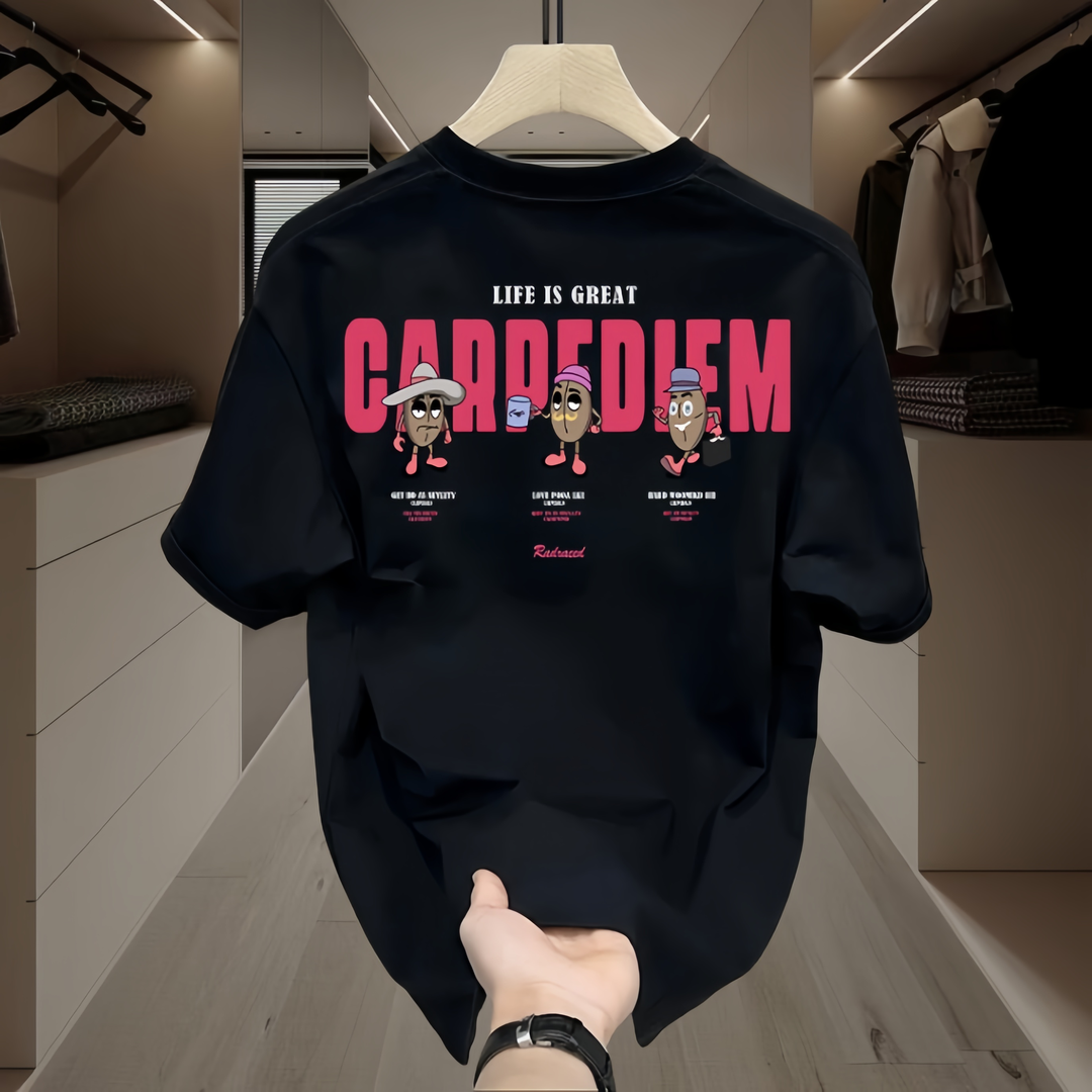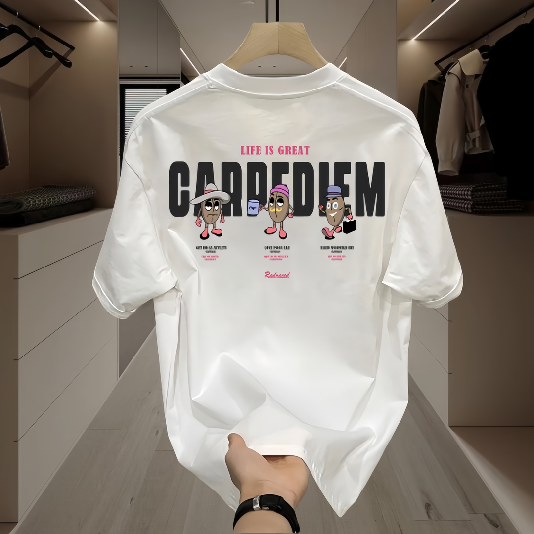 Light luxury neck men’s white Hong Kong style cartoon simple short sleeves
