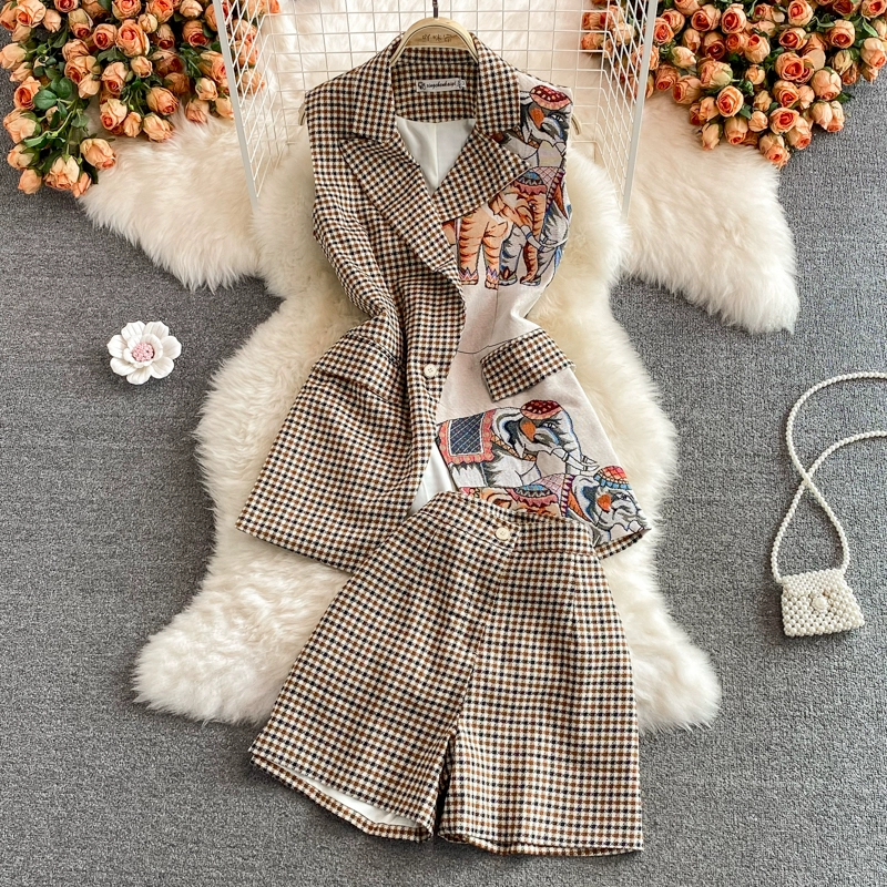 | nameOriginal | Light luxury color block plaid vest jacket with wide leg suit collar |