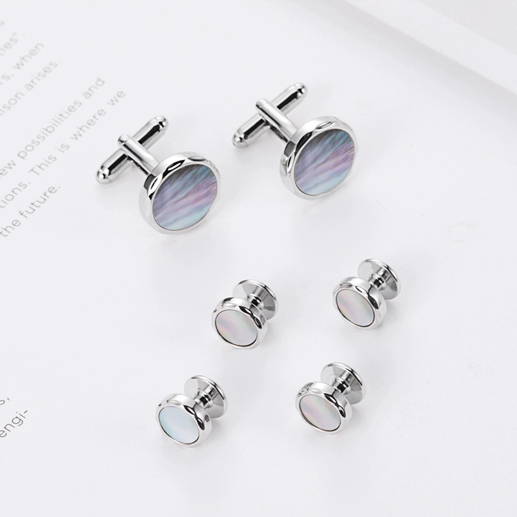 Light luxury colorful shell tuxedo round gift cufflinks