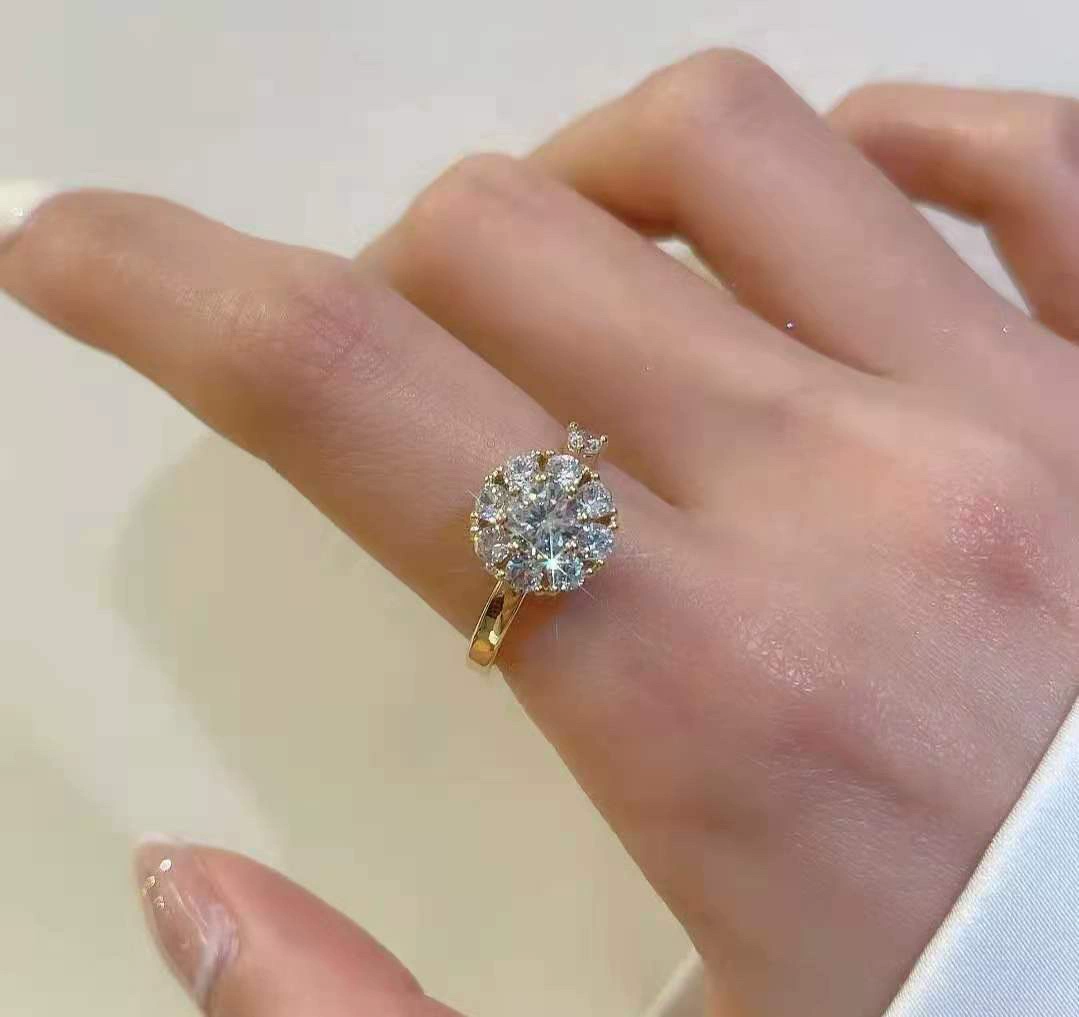 Light luxury Douyin hot trendy pink super flash women’s ring