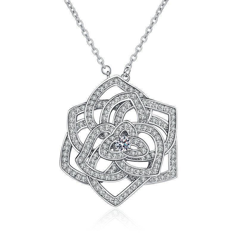 Light Luxury Elegant Flower Niche Design Textured Jewelry Micro-inlaid with Diamond Rose Necklace Earrings Women's Suit
