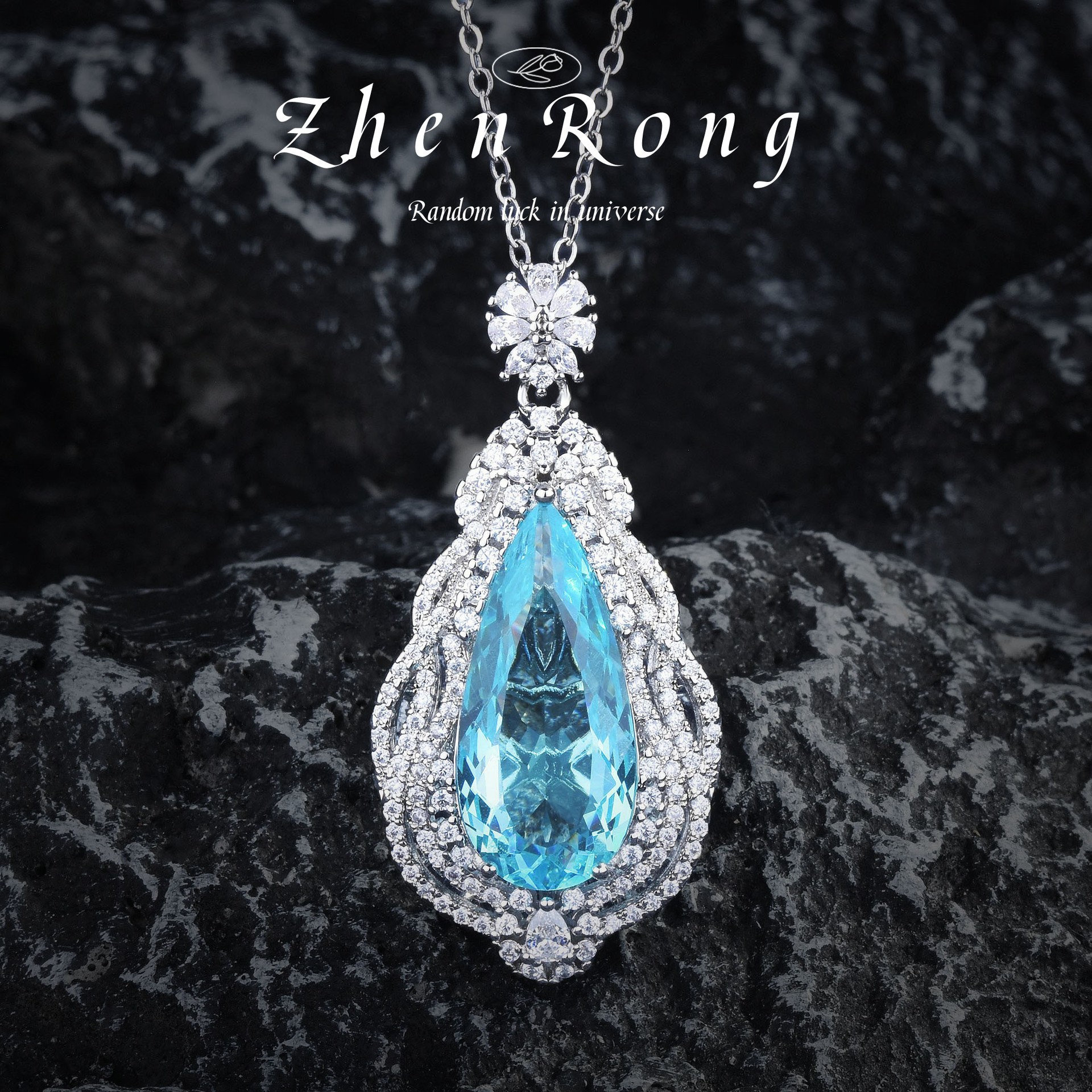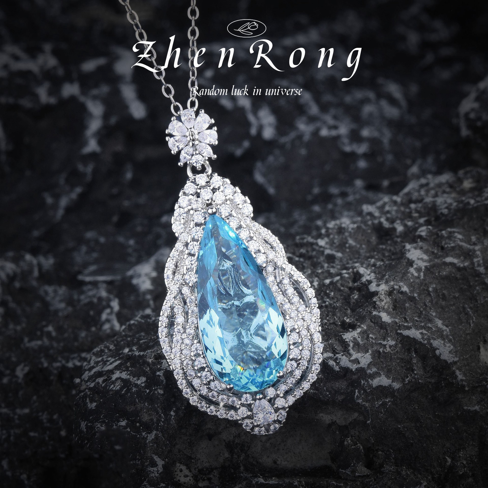 | nameOriginal | Light Luxury Elegant Santa Maria Aquamarine Water Drop Pendant Necklace Water Drop Ring Color Treasure Earrings Blue Diamond suit |