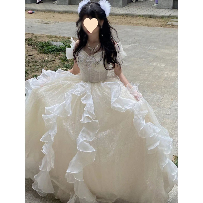 | nameOriginal | Light Luxury Evening Dress 2024 New Style Light Veil Fairy Host Pontu Skirt Vocal Art Test Adult Gown |