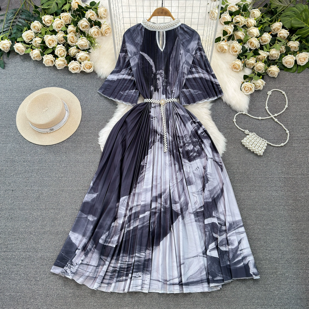 | nameOriginal | Light luxury fashionable beaded gradient dress short sleeves |