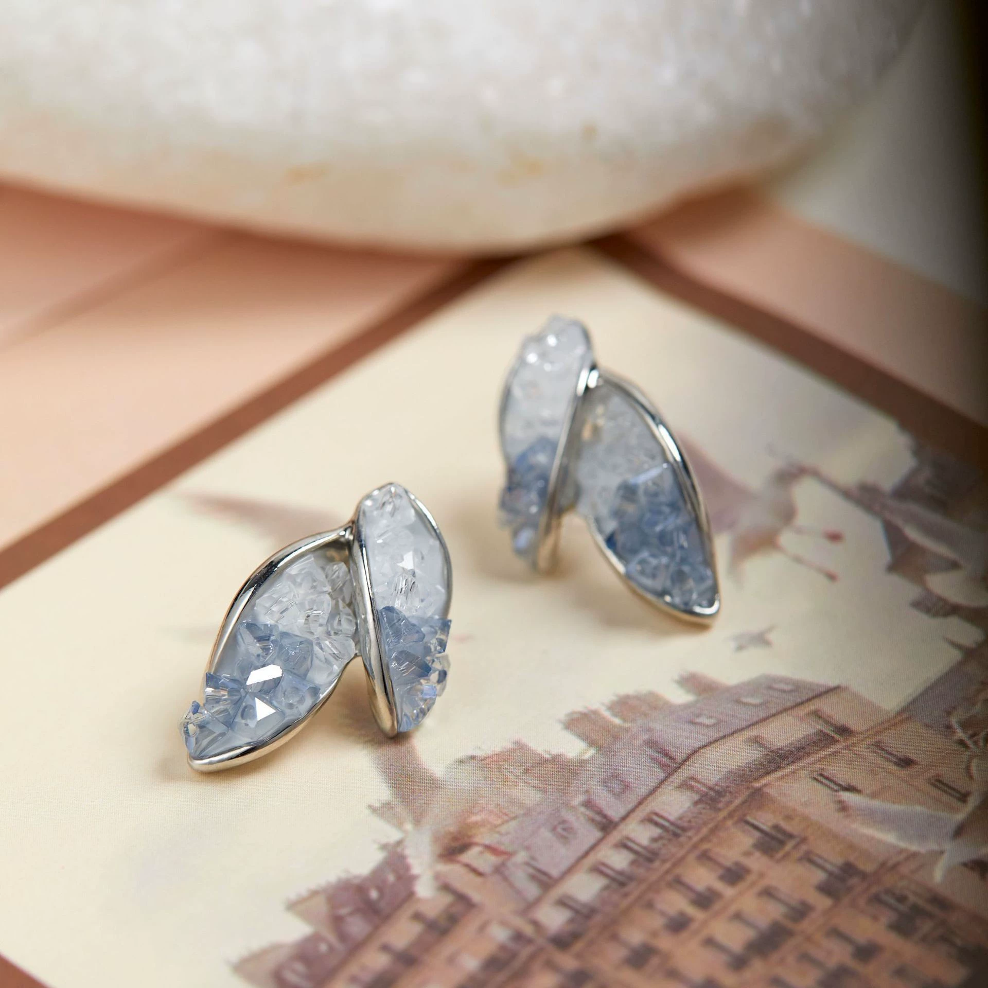 | nameOriginal | Light luxury fashionable leaf stud earrings three-dimensional blue crystal |