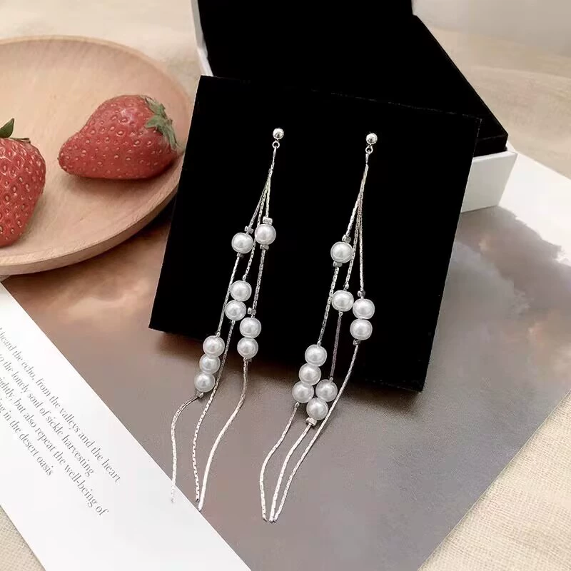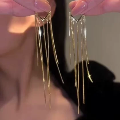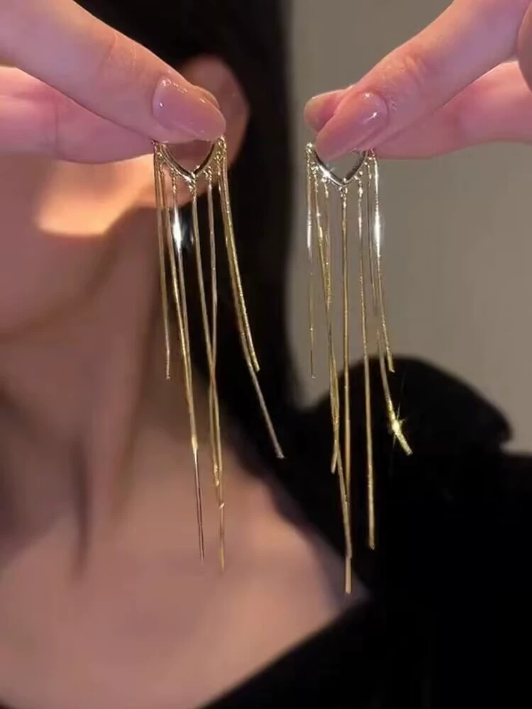 Light luxury female niche design face slimming tassel earrings