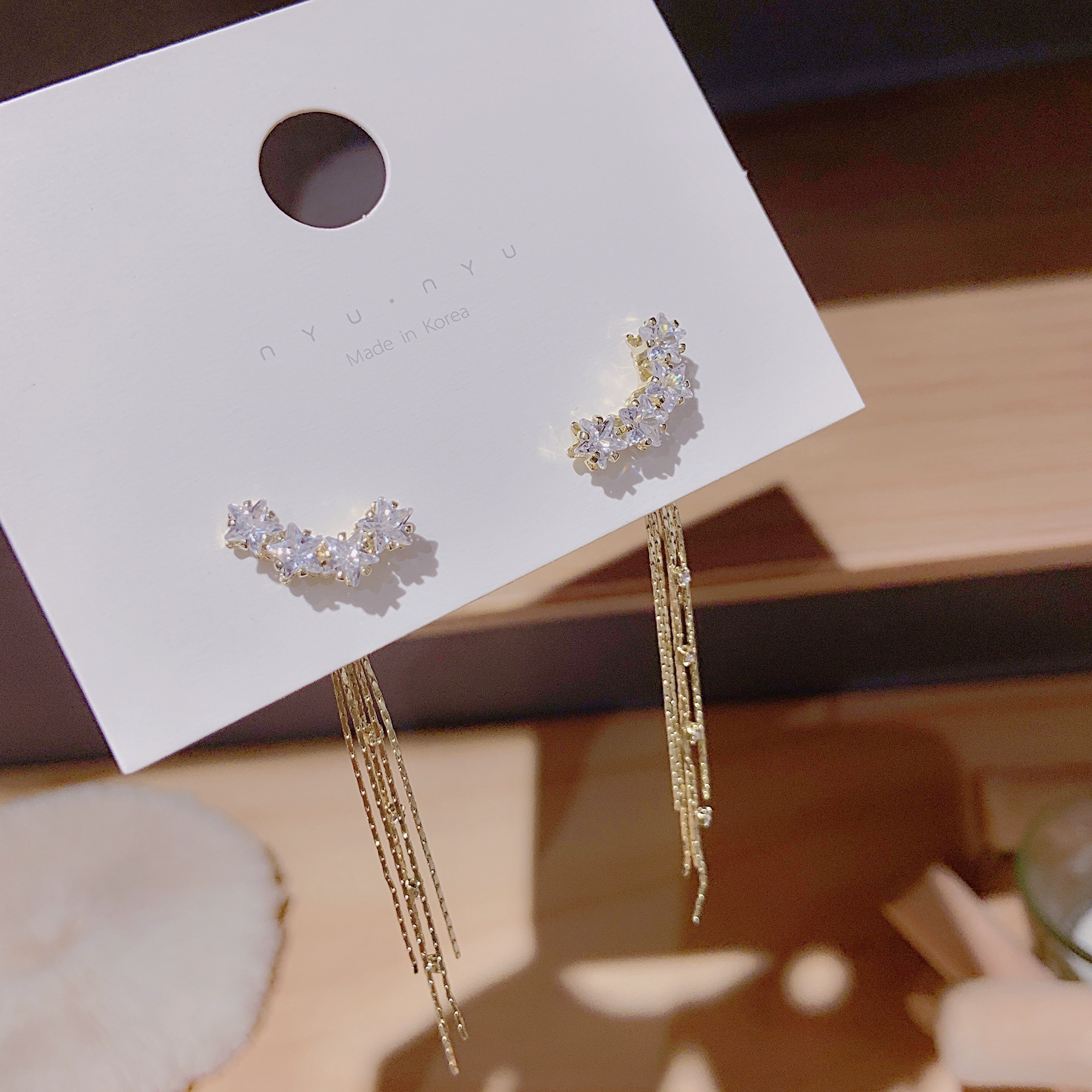 | nameOriginal | Light luxury five-pointed star tassel earrings for women silver needle |