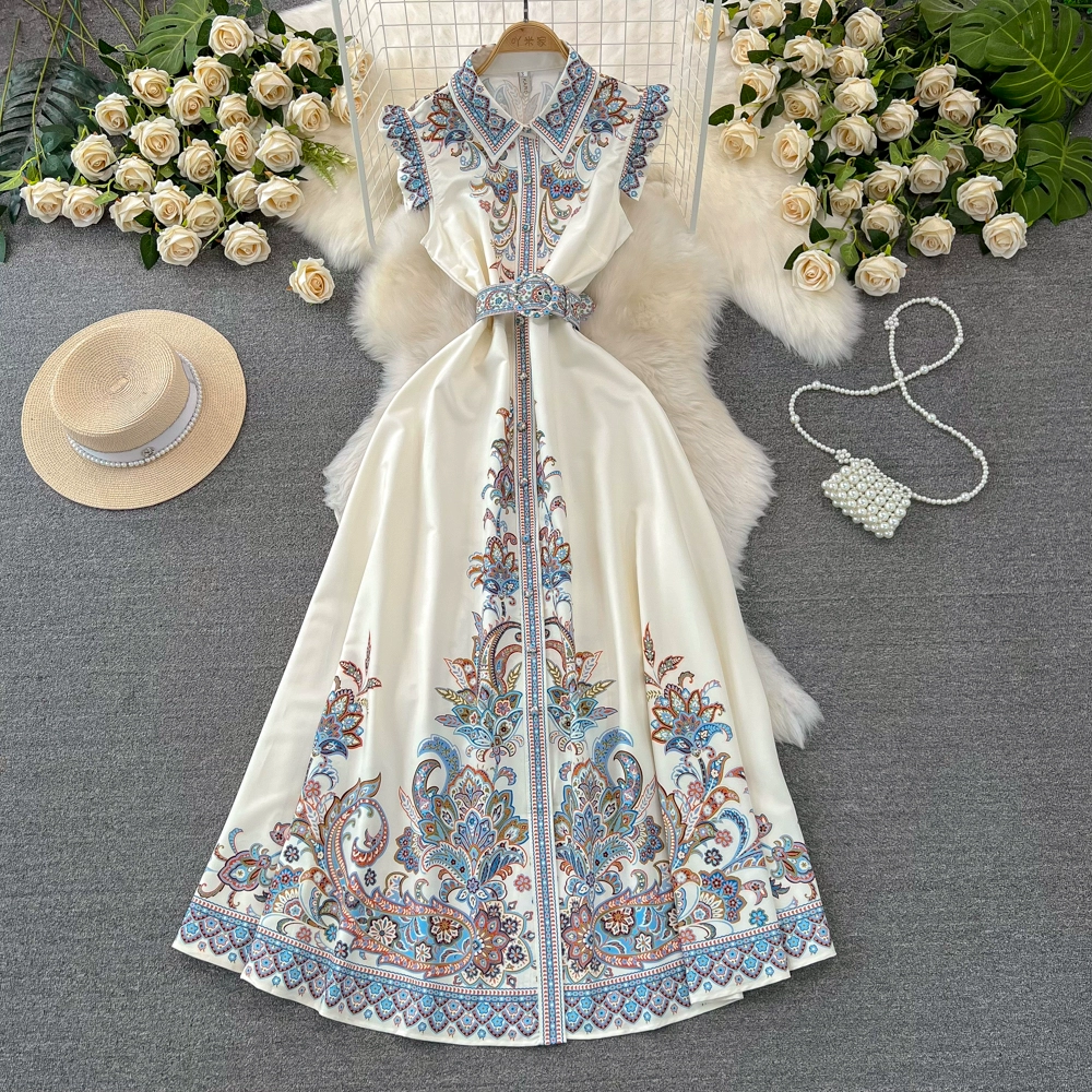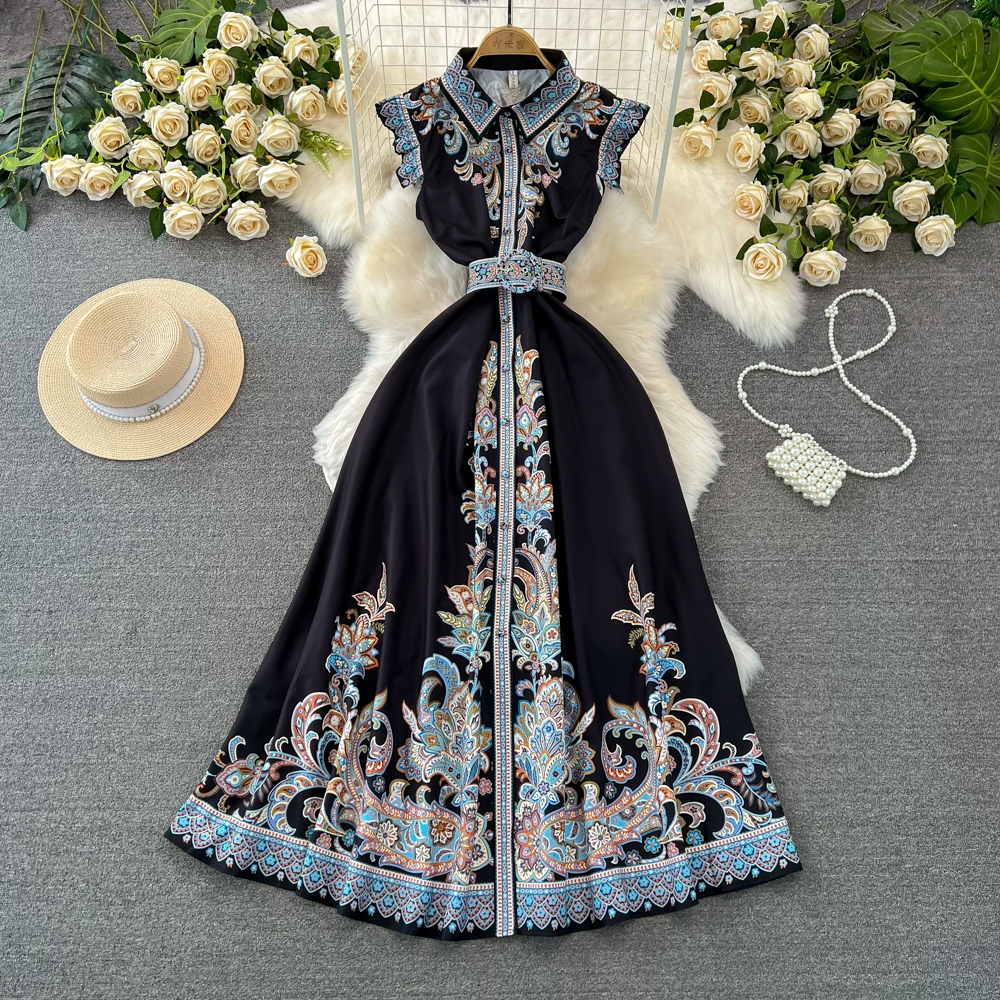 | nameOriginal | Light luxury flying sleeve single breasted dress printed shirt |
