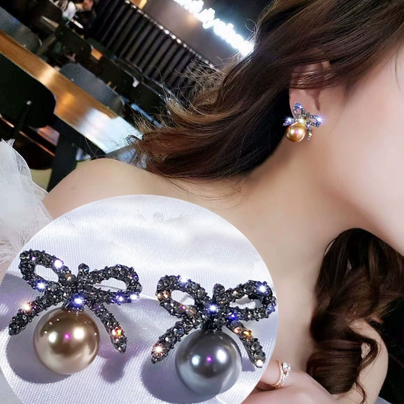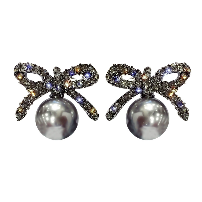 | nameOriginal | Light luxury full diamond bow pearl earrings for women, small, exquisite and high-end earrings for women, retro Hong Kong style versatile earrings |