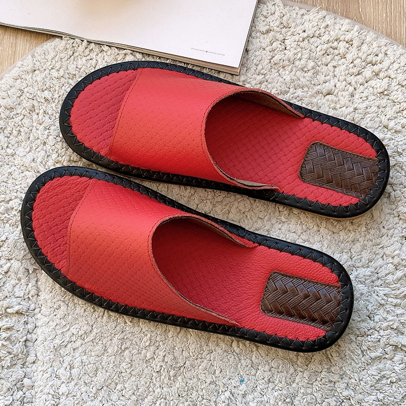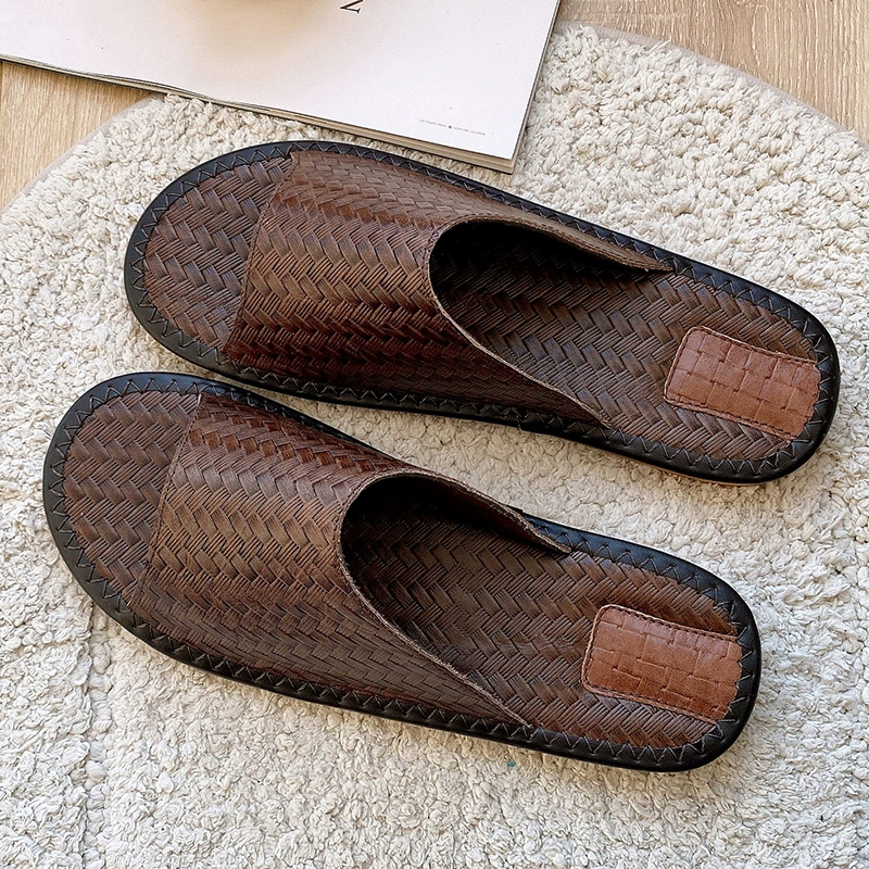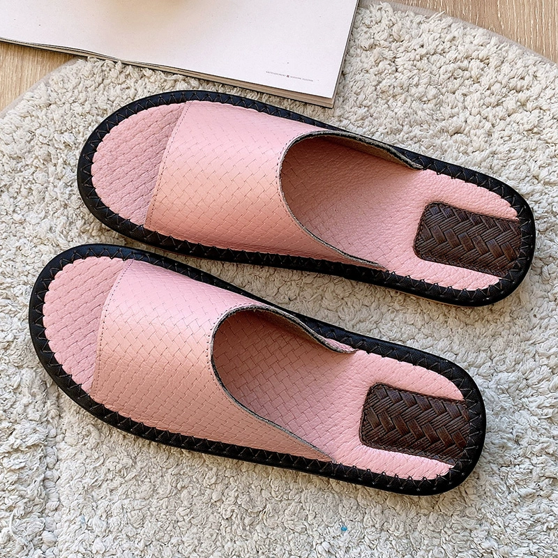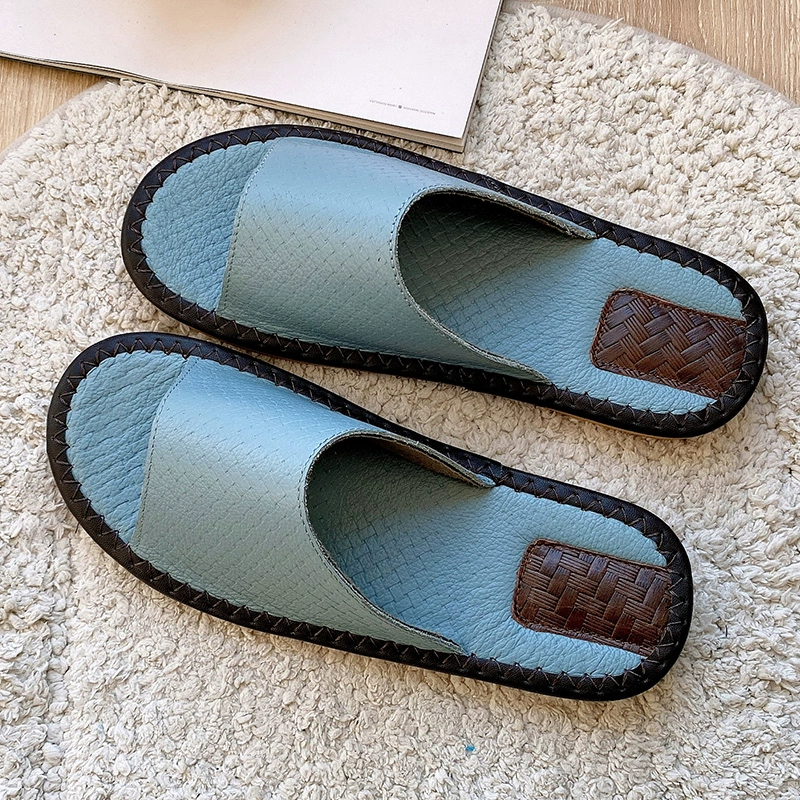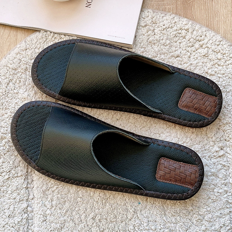 Light luxury high -end leather slippers Men’s summer home room non -slip non -stinky feet full leather slippers women’s floor
