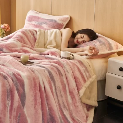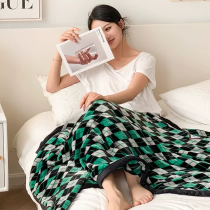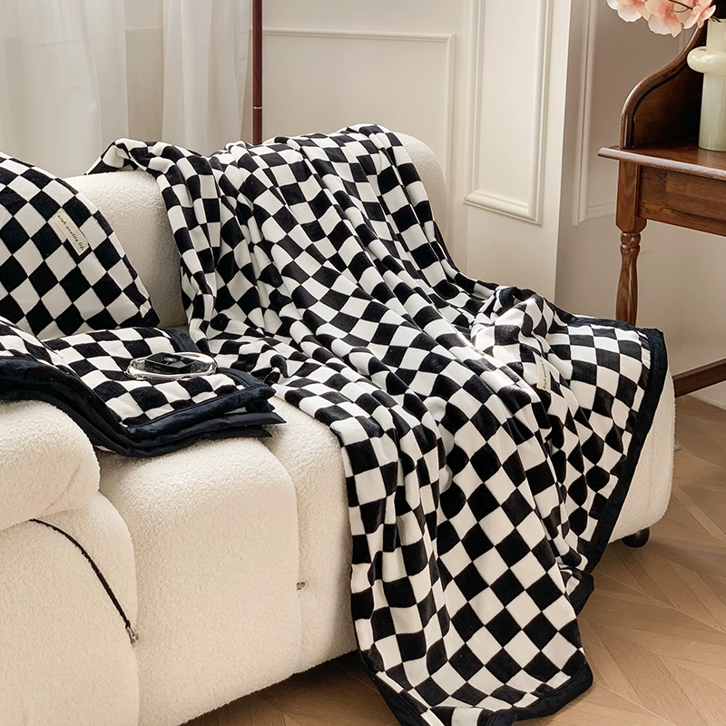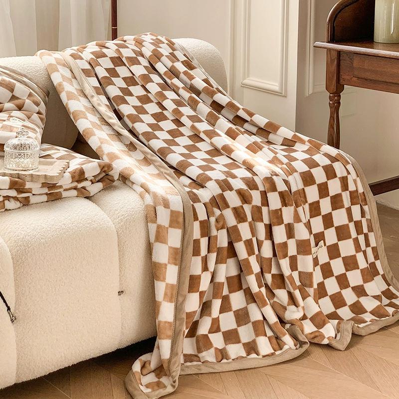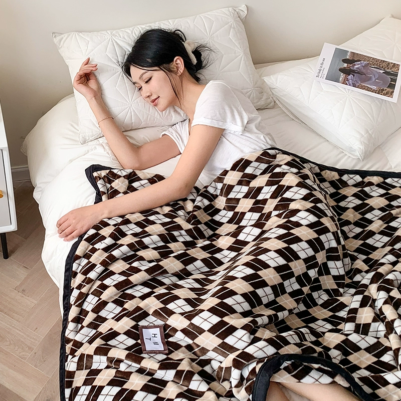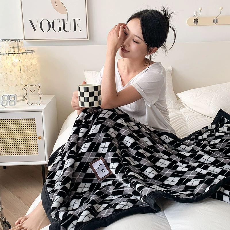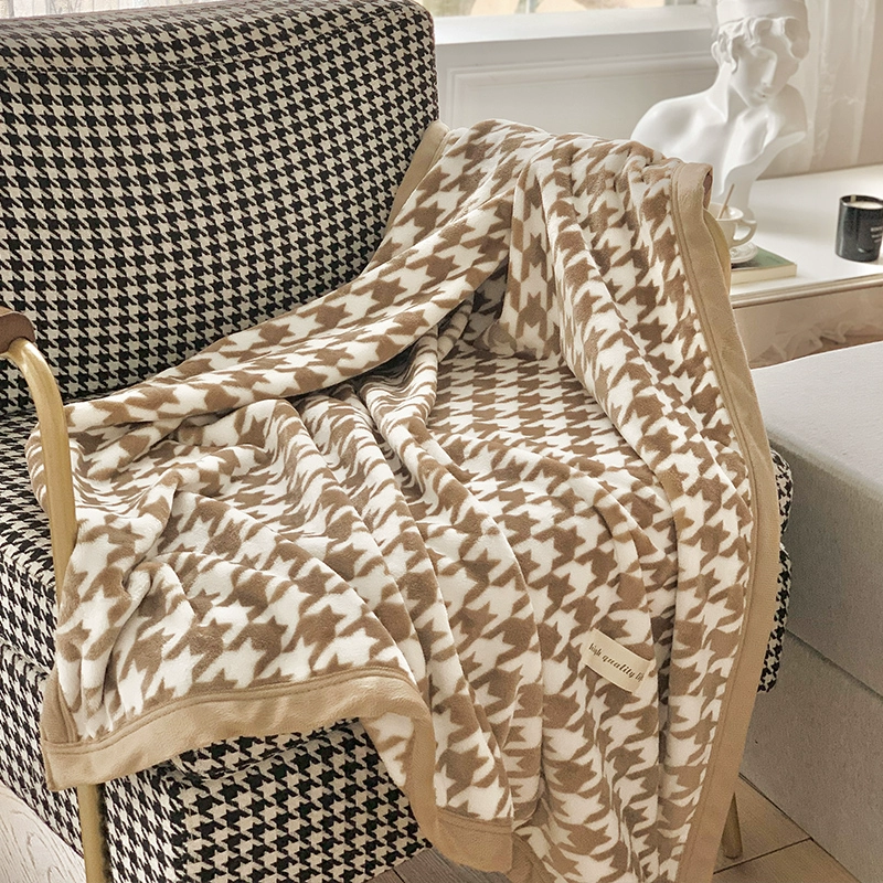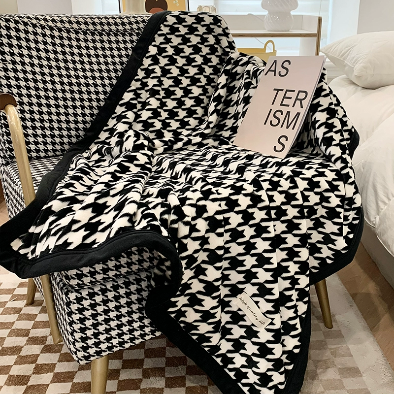 Light luxury houndstooth coral velvet sheets dormitory blanket