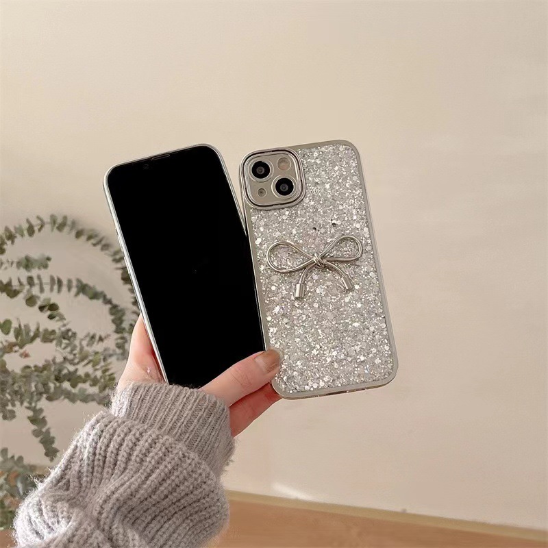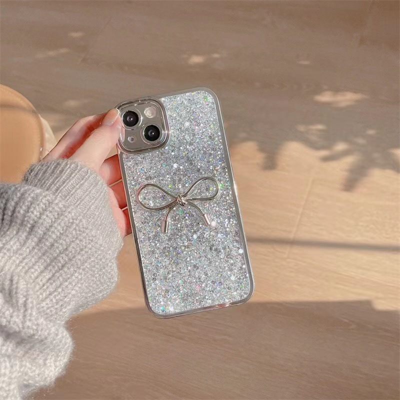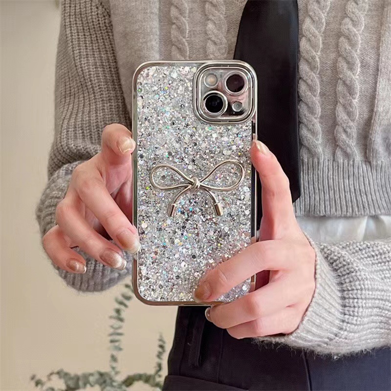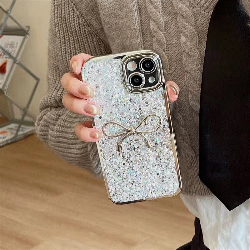 Light luxury ins electroplated sequin bow for Apple 14 phone case iPhone13/12 female 15ProMax hard