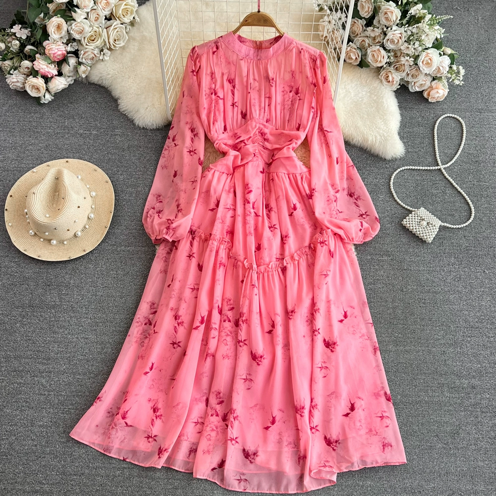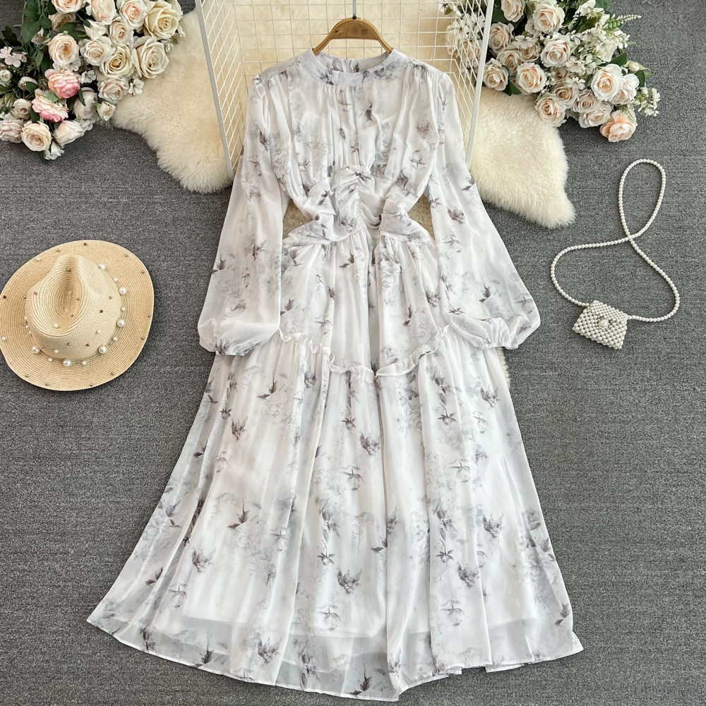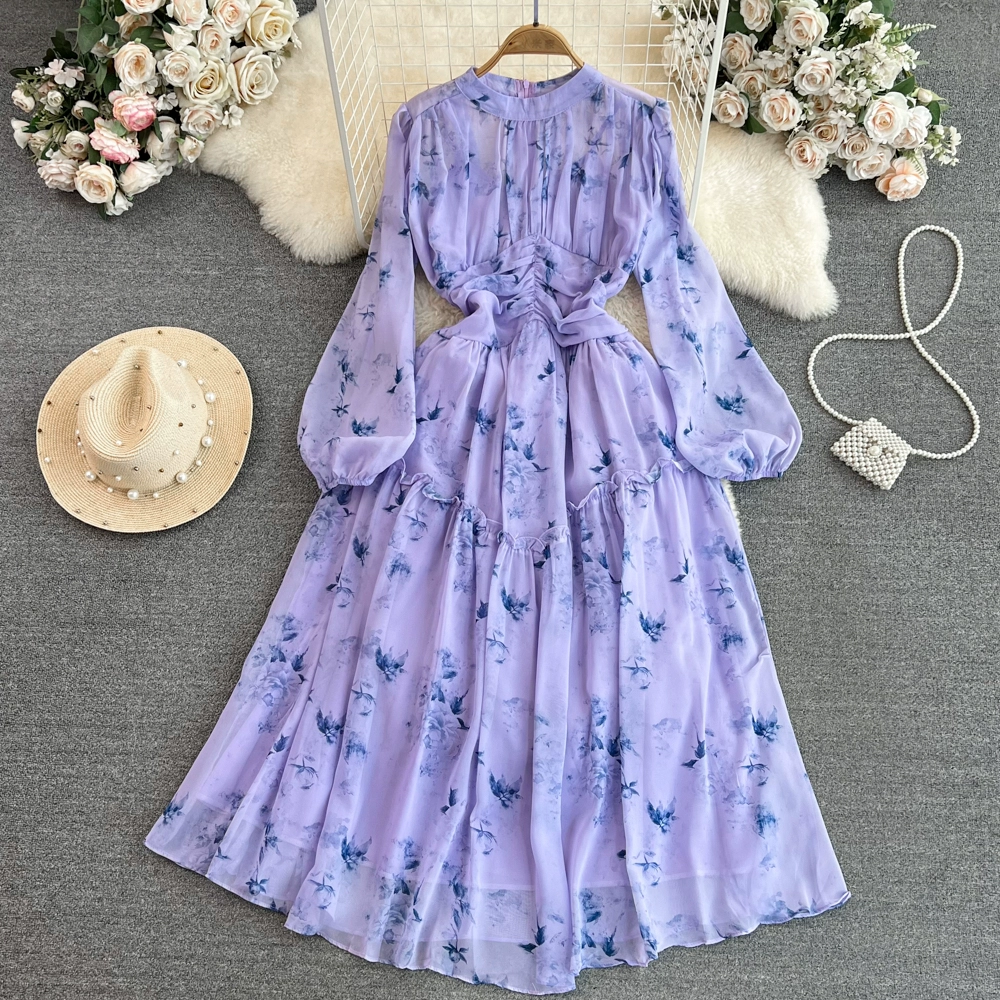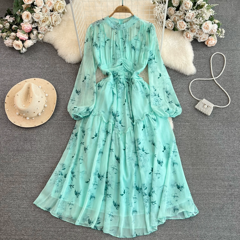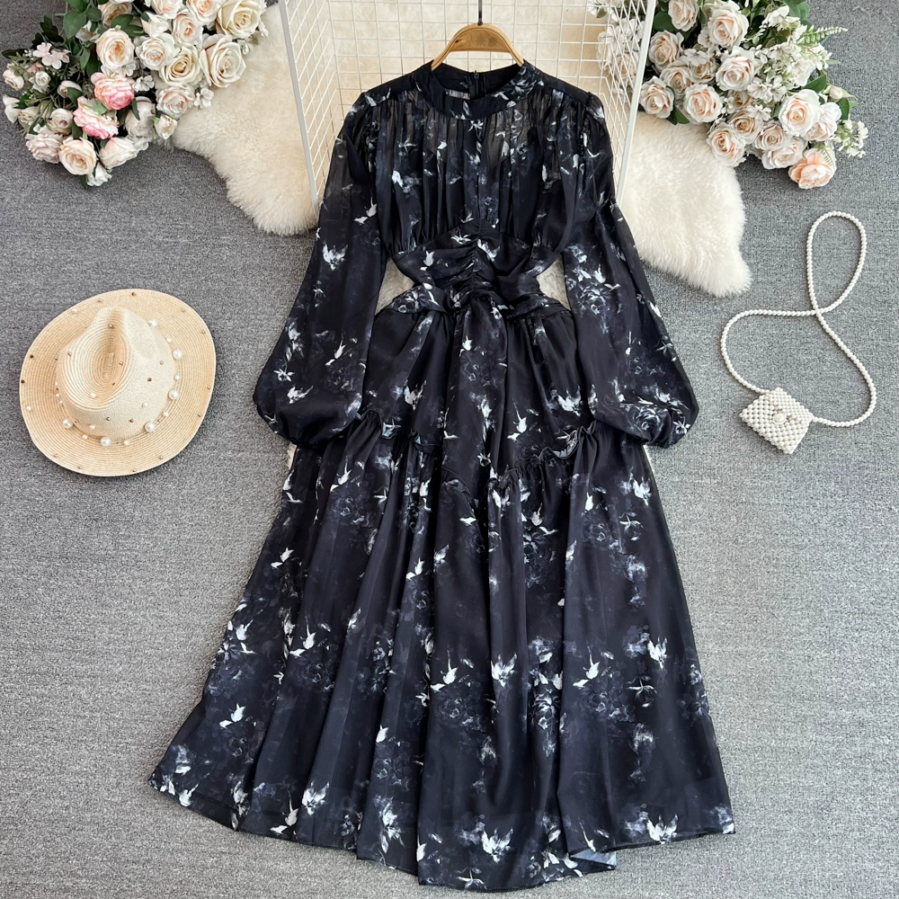| nameOriginal | Light luxury lantern long-sleeved elegant chiffon dress with stand collar |