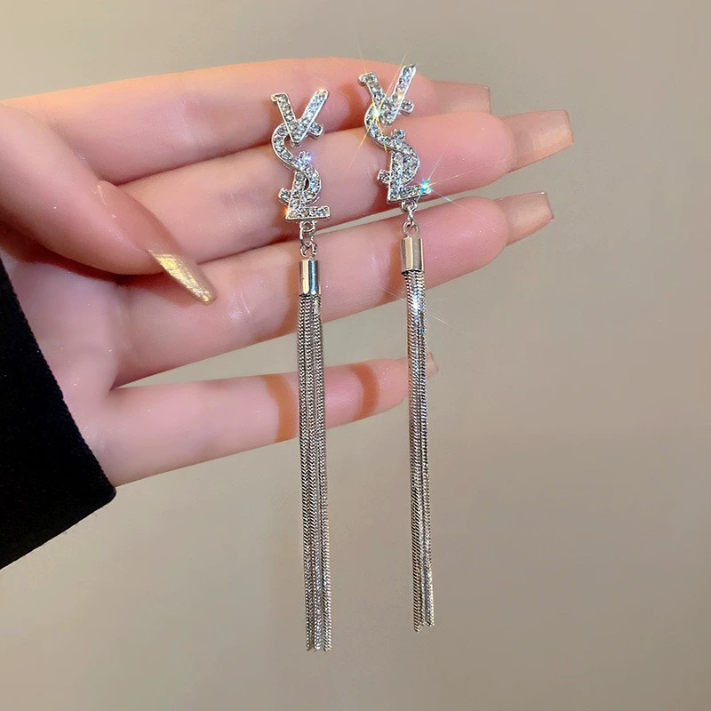 | nameOriginal | Light luxury letter set diamond tassel earrings cold style silver needle |