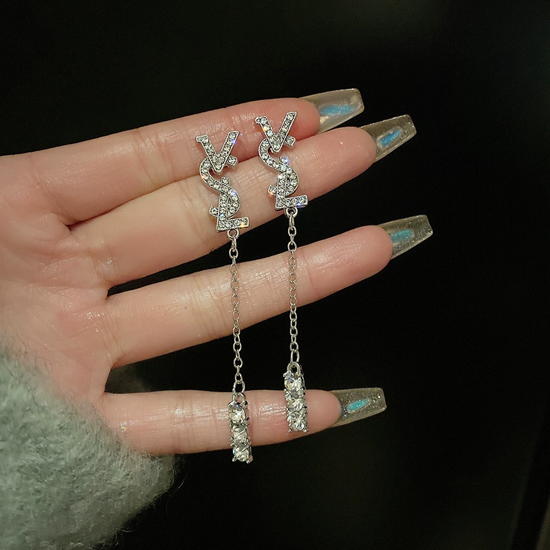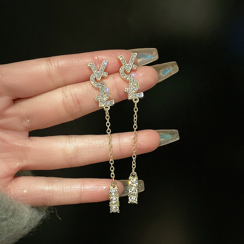 | nameOriginal | Light luxury letter tassel earrings for women niche design sparkling diamonds |