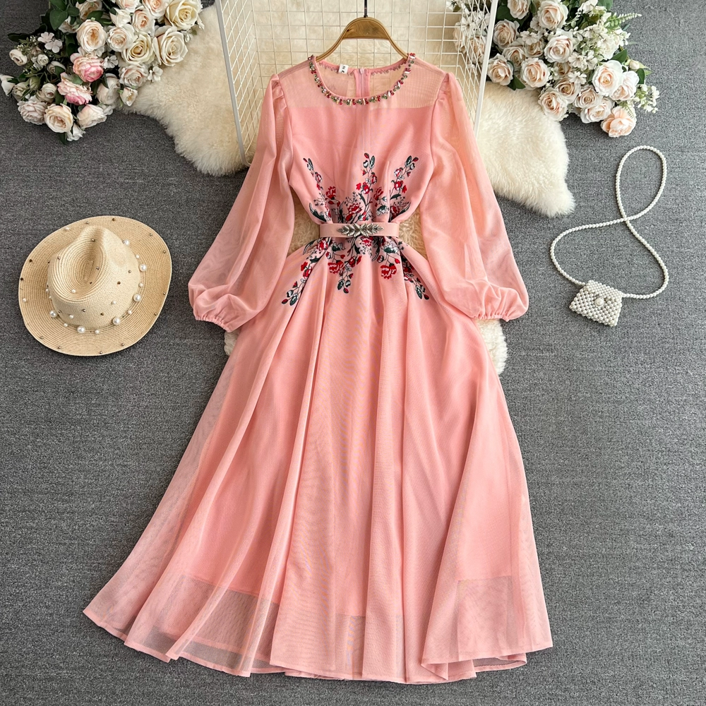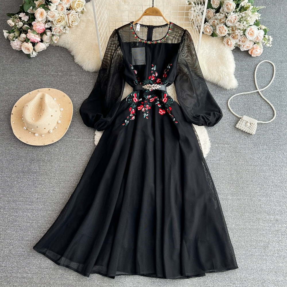 | nameOriginal | Light luxury long-sleeved diamond-encrusted A-line dress in elegant mesh |