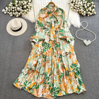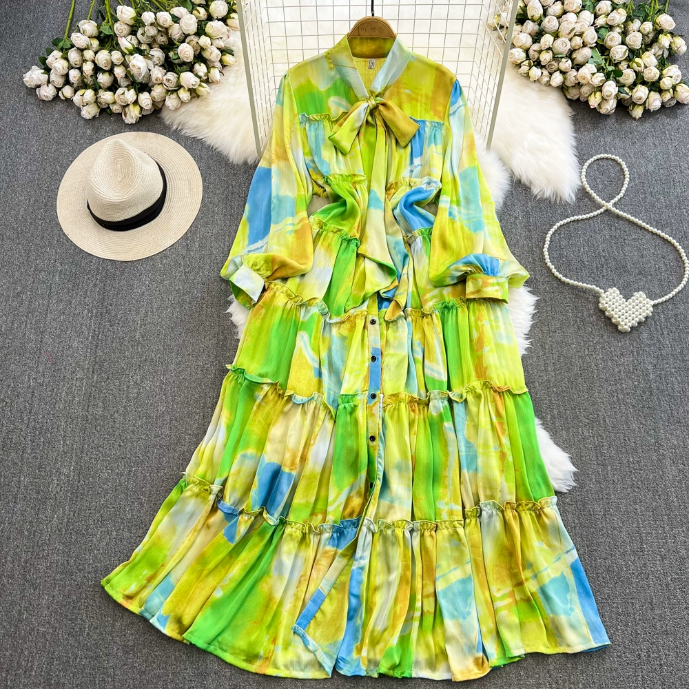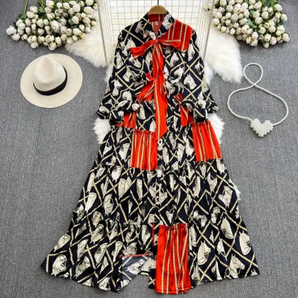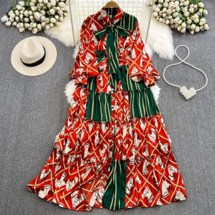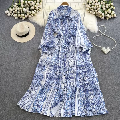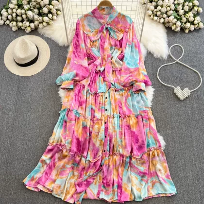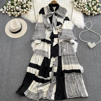 | nameOriginal | Light luxury long-sleeved dress with elegant bow tie |
