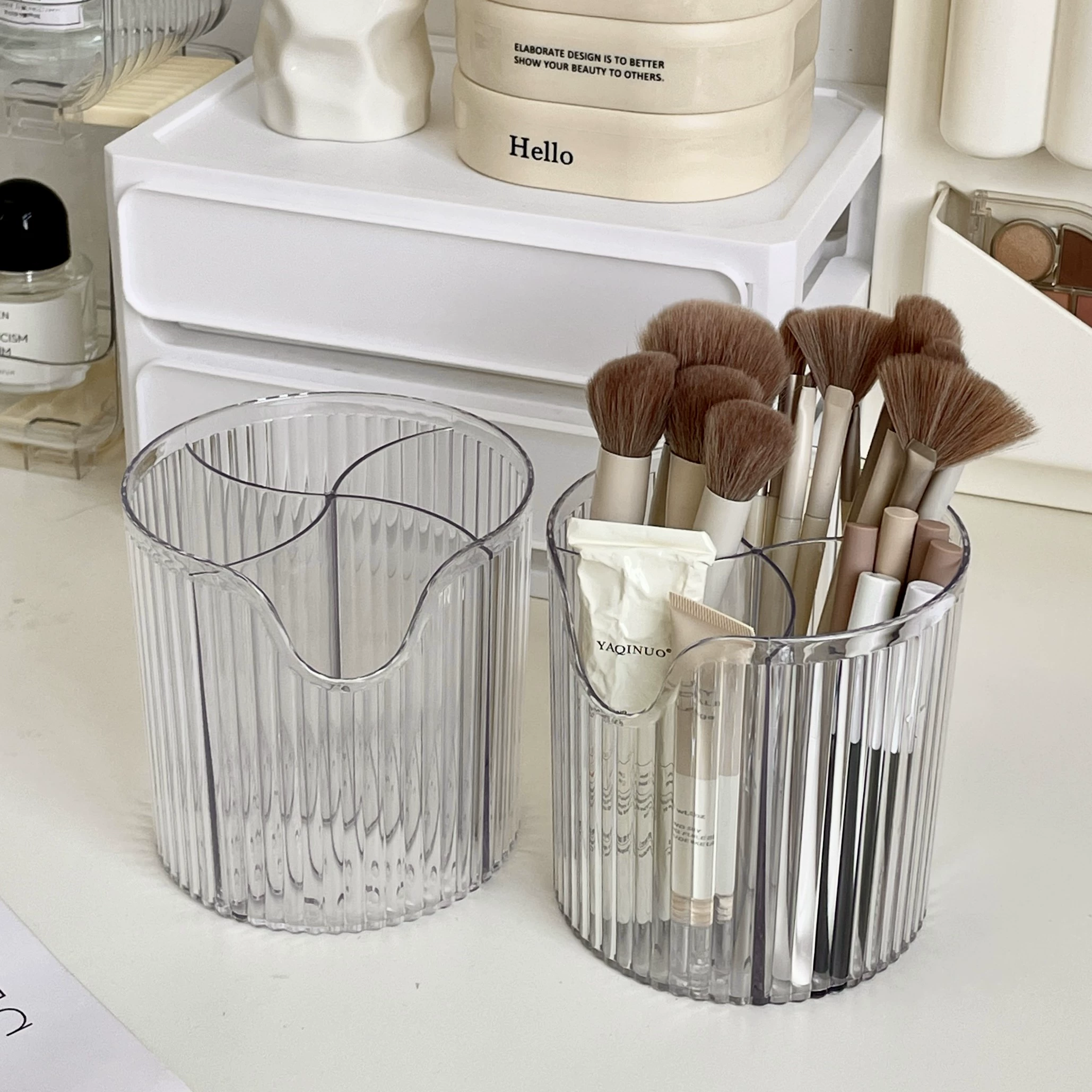 | nameOriginal | Light luxury makeup brush storage barrel desktop student dormitory pen holder bedroom dressing table eyebrow pencil lipstick eyeliner storage barrel |