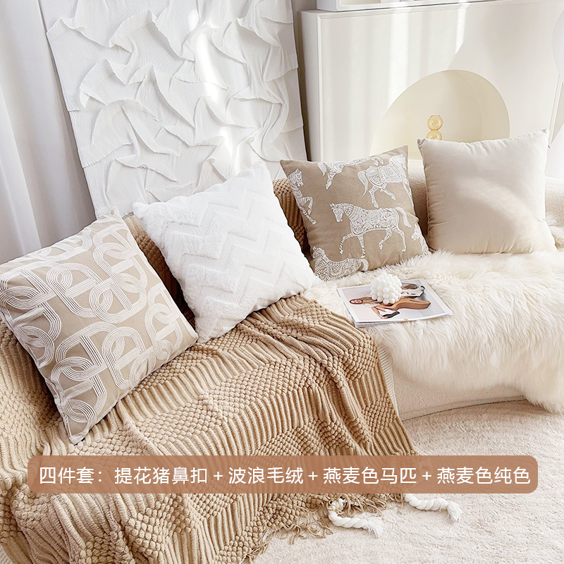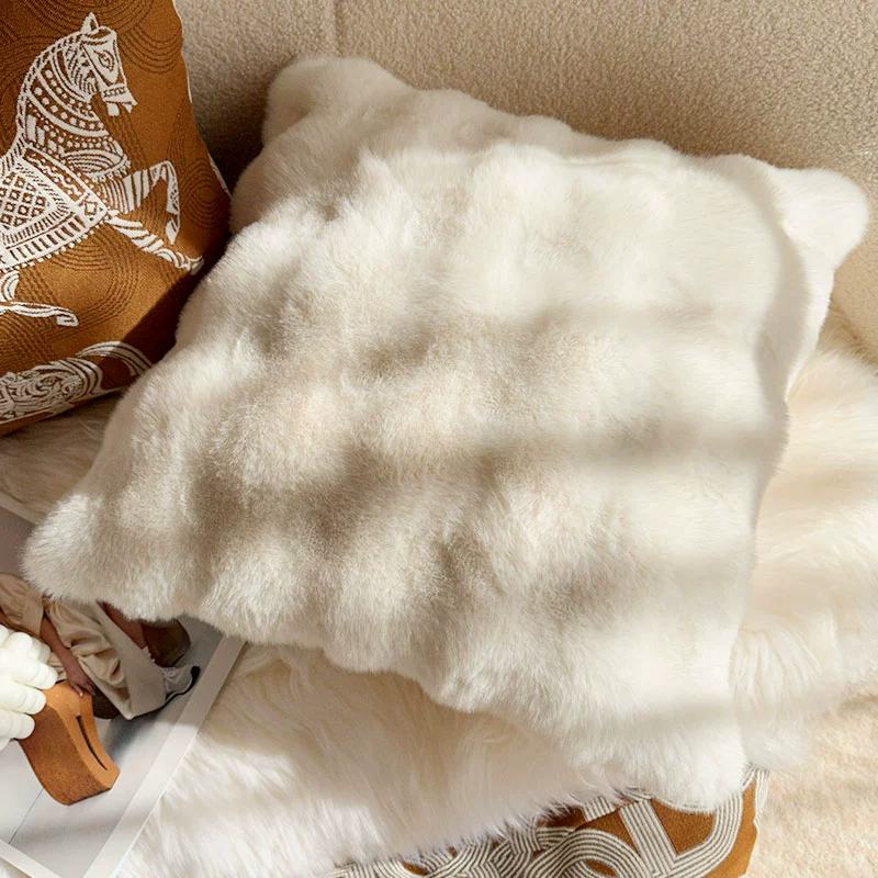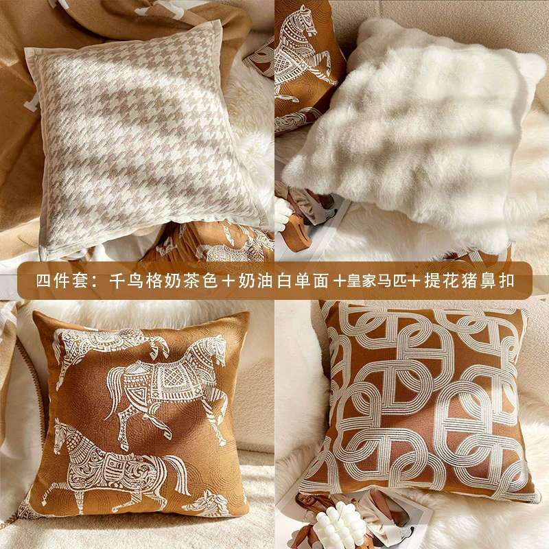 | nameOriginal | Light luxury medieval royal jacquard pillow plush French tea wood color cushion simple sofa living room fur cushion cover |