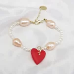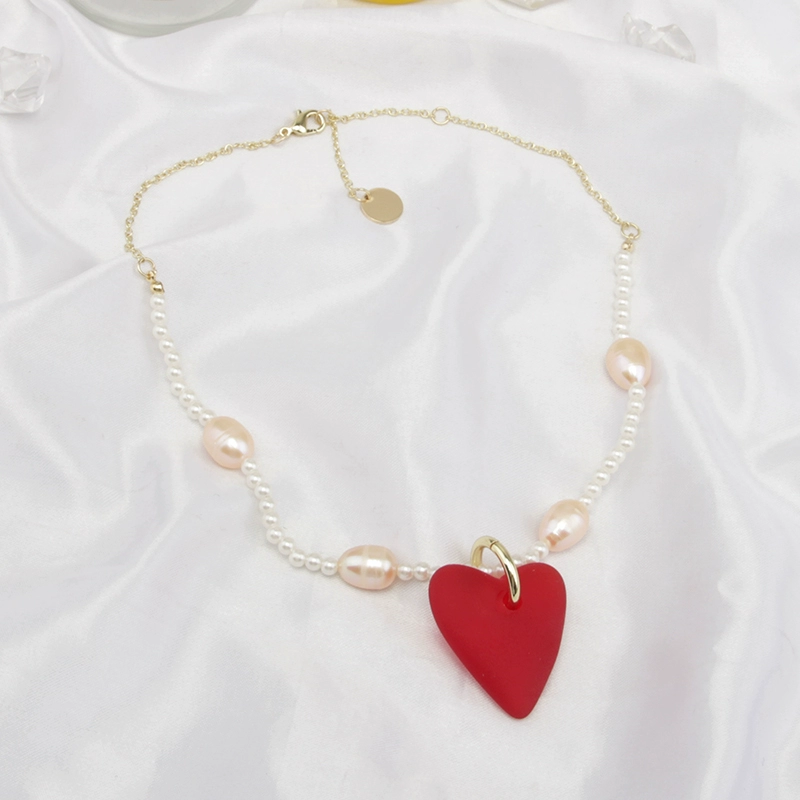 | nameOriginal | Light luxury niche natural freshwater pearl love necklace women ins trendy red peach heart pendant clavicle chain sweater chain |