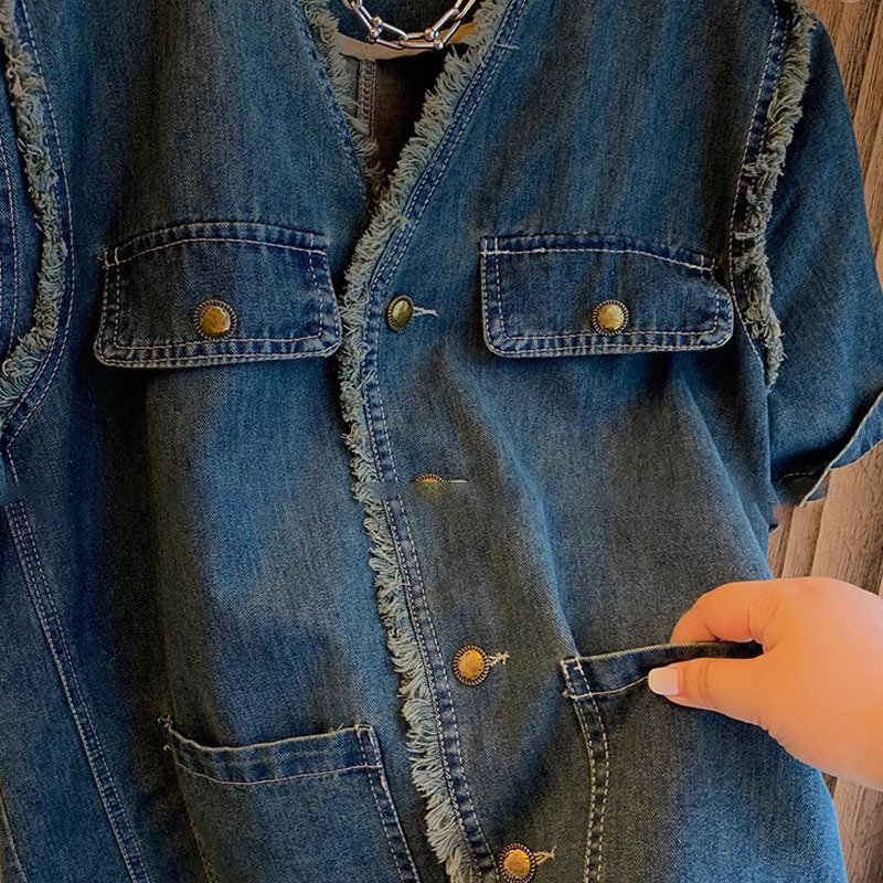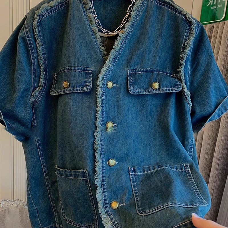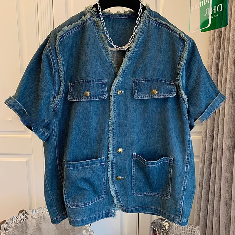 Light Luxury Niche Short-sleeved Blouse Denim Clothes Women’s Korean-style Loose Meat Covering Top 2024 Summer New All-match
