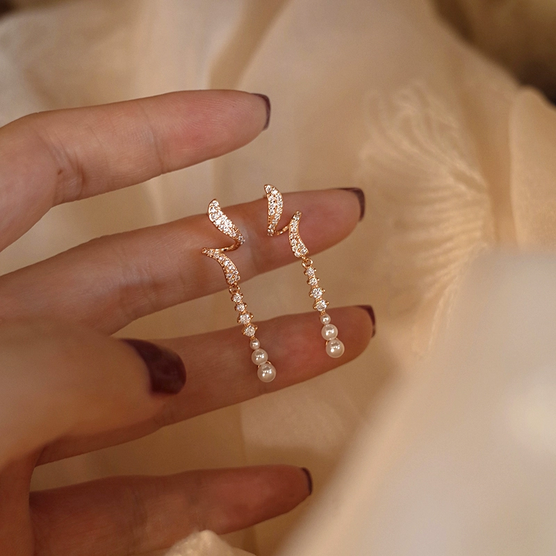 | nameOriginal | Light luxury pearl women's fashion earrings popular niche rhinestones |