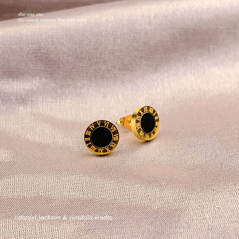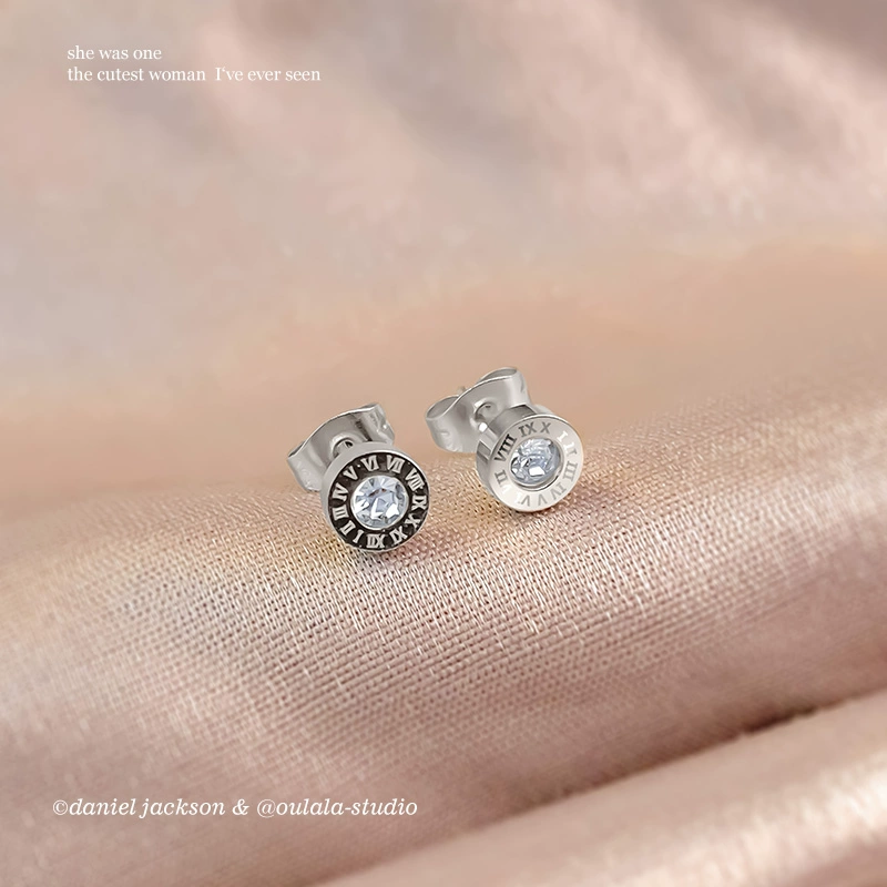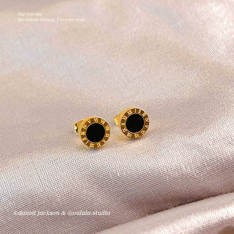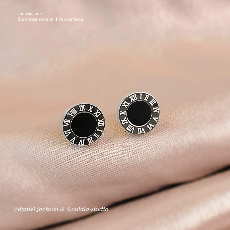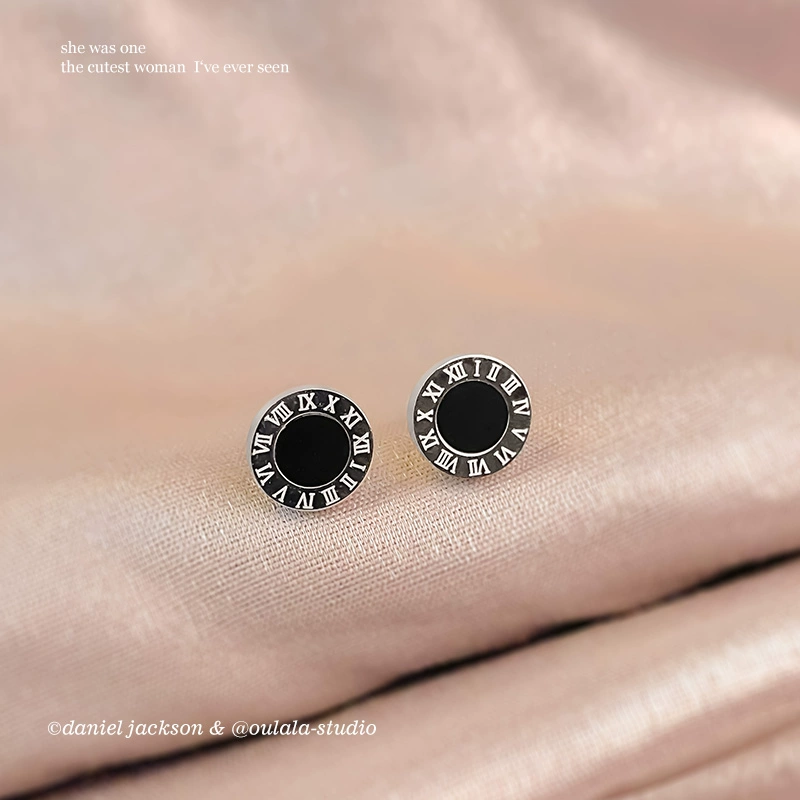 | nameOriginal | Light luxury Roman numeral popular titanium steel girly style earrings |