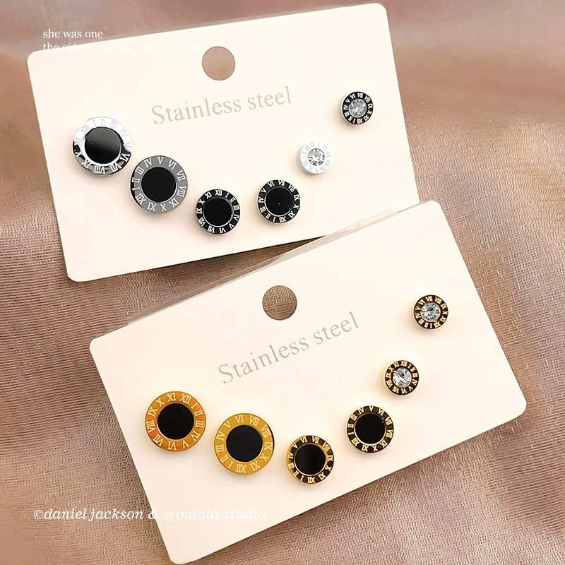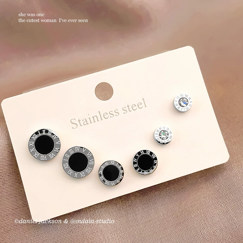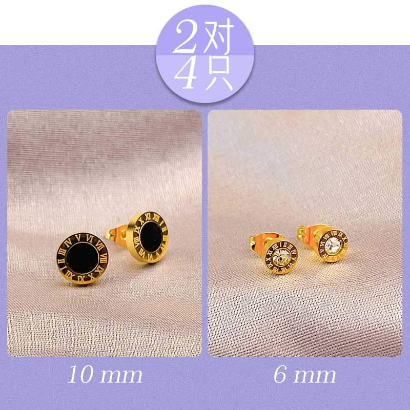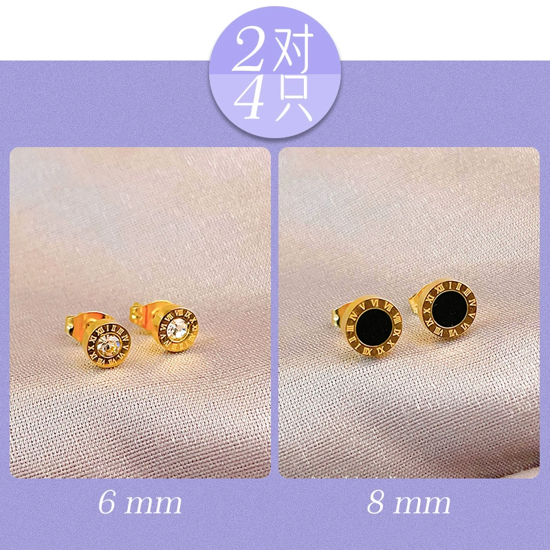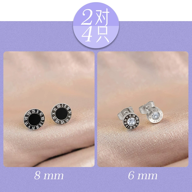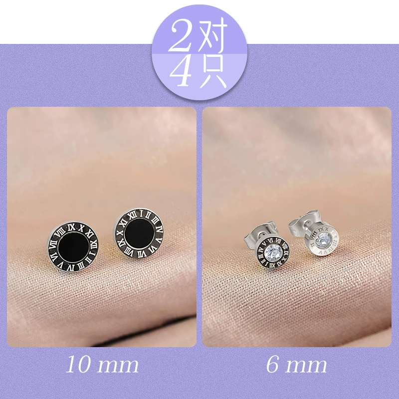 | nameOriginal | Light luxury Roman numeral popular titanium steel girly style earrings |