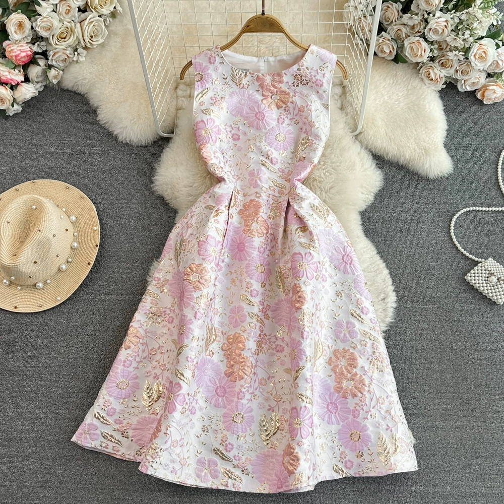 | nameOriginal | Light luxury round neck a-line jacquard dress dress vest |