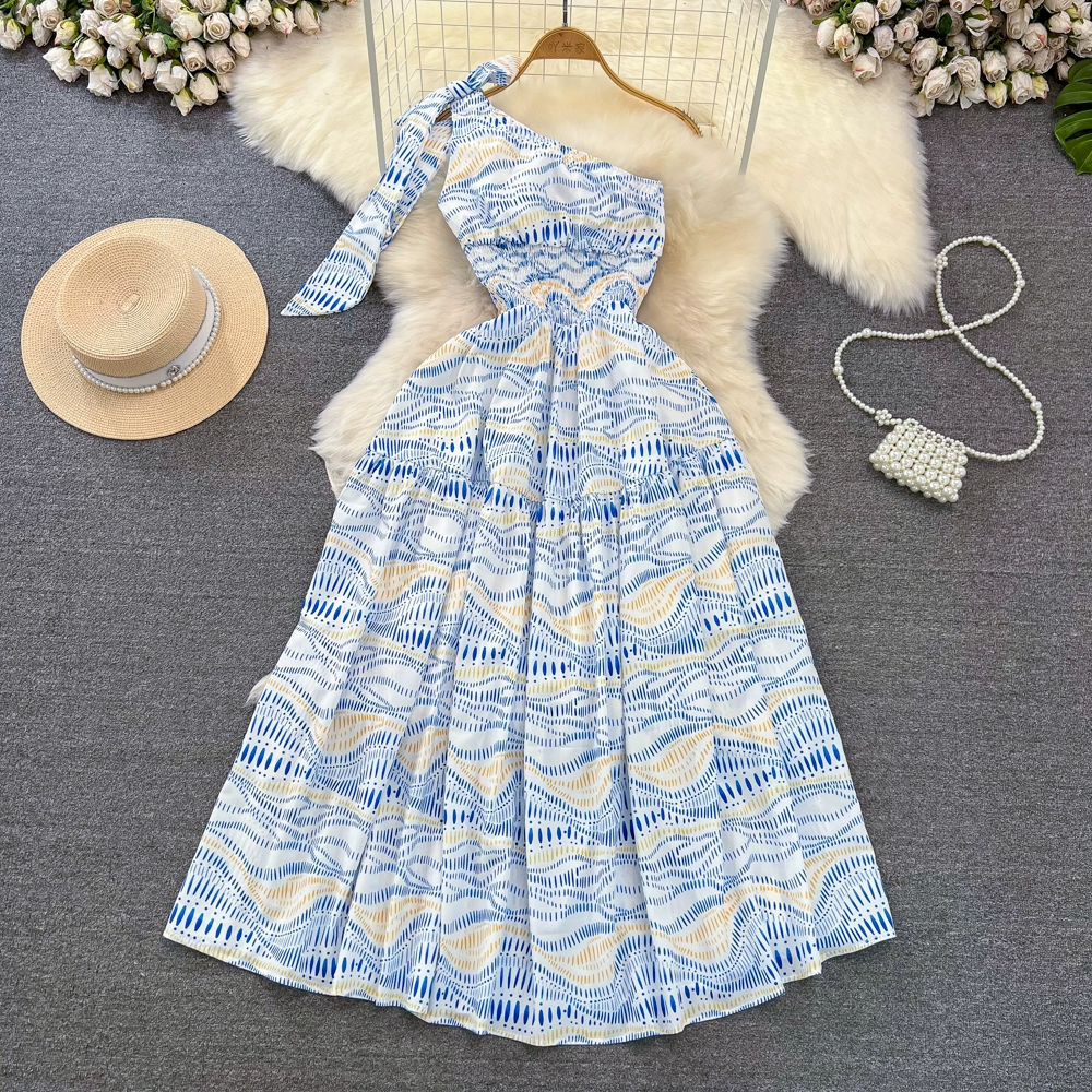 | nameOriginal | Light luxury slant neck off-shoulder A-line elegant dress with wide hem |