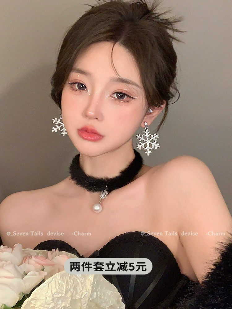 | nameOriginal | Light luxury snowflake earrings internet celebrity new year female niche sparkling diamonds |