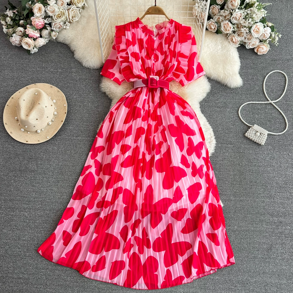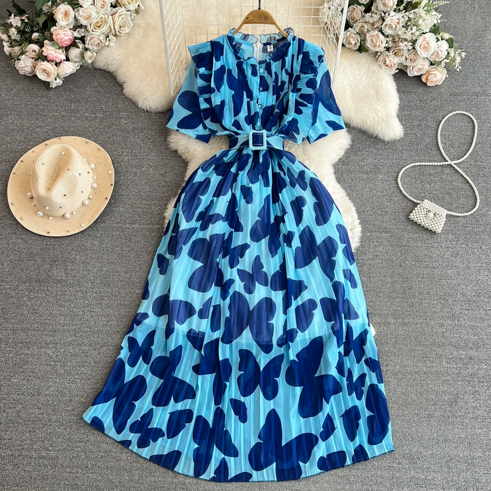 | nameOriginal | Light luxury stand-up collar A-line printed dress with elegant short sleeves |
